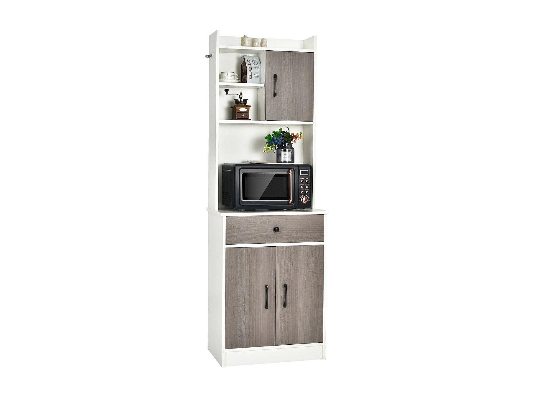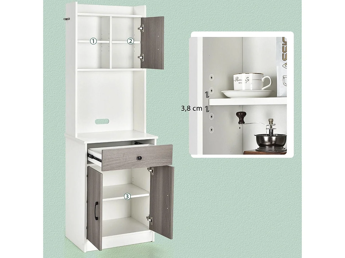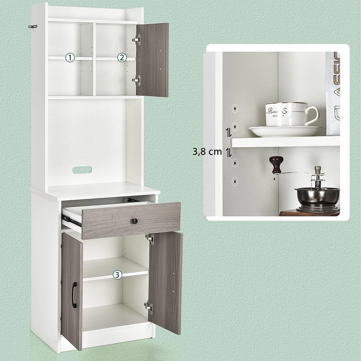 Mobile da cucina con 3 ante e ripiani regolabili, Credenza con ampio spazio aperto per microonde Bianco