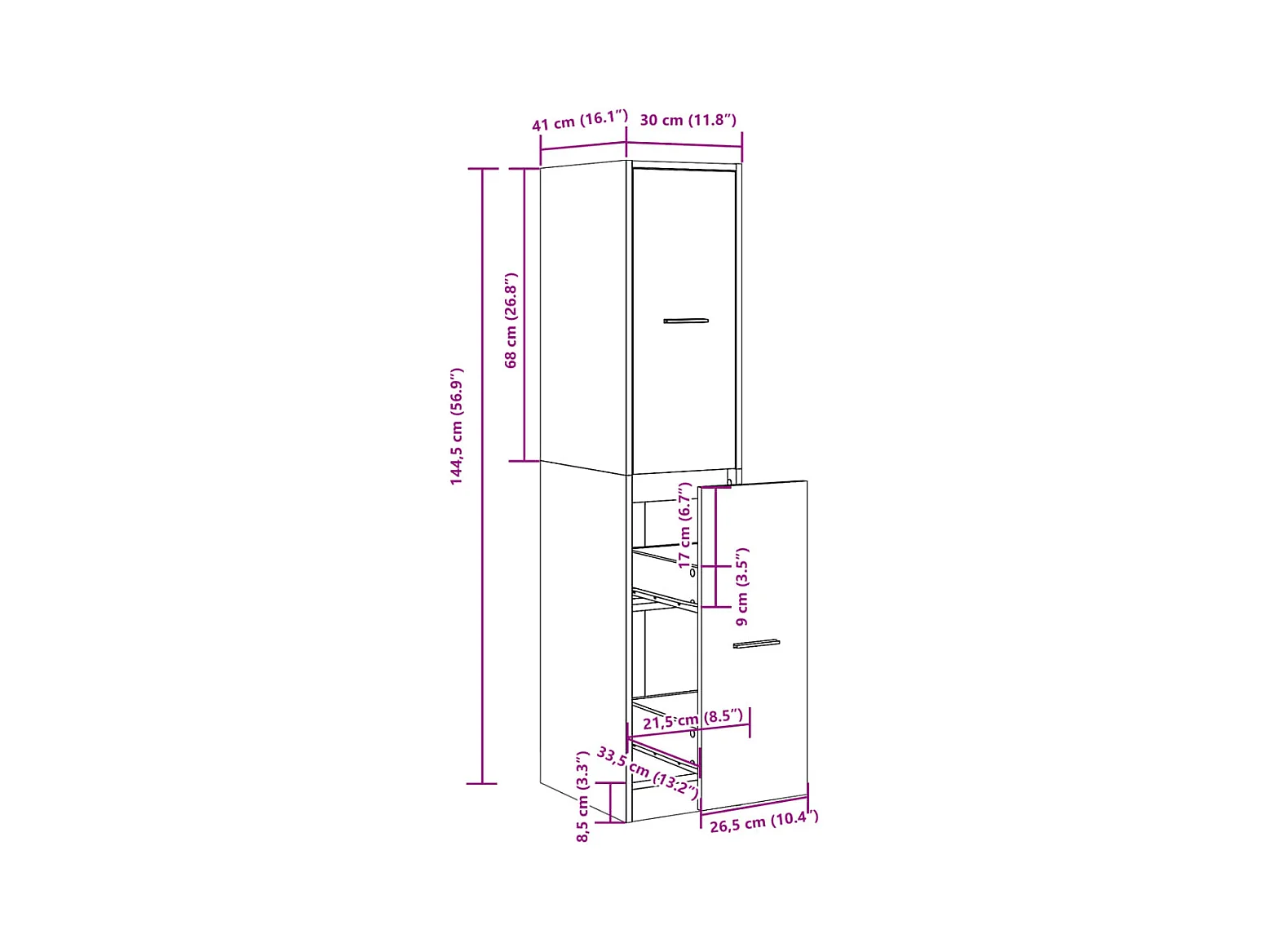 Mobile da farmacia in rovere marrone 30x41x174,5 cm in MDF