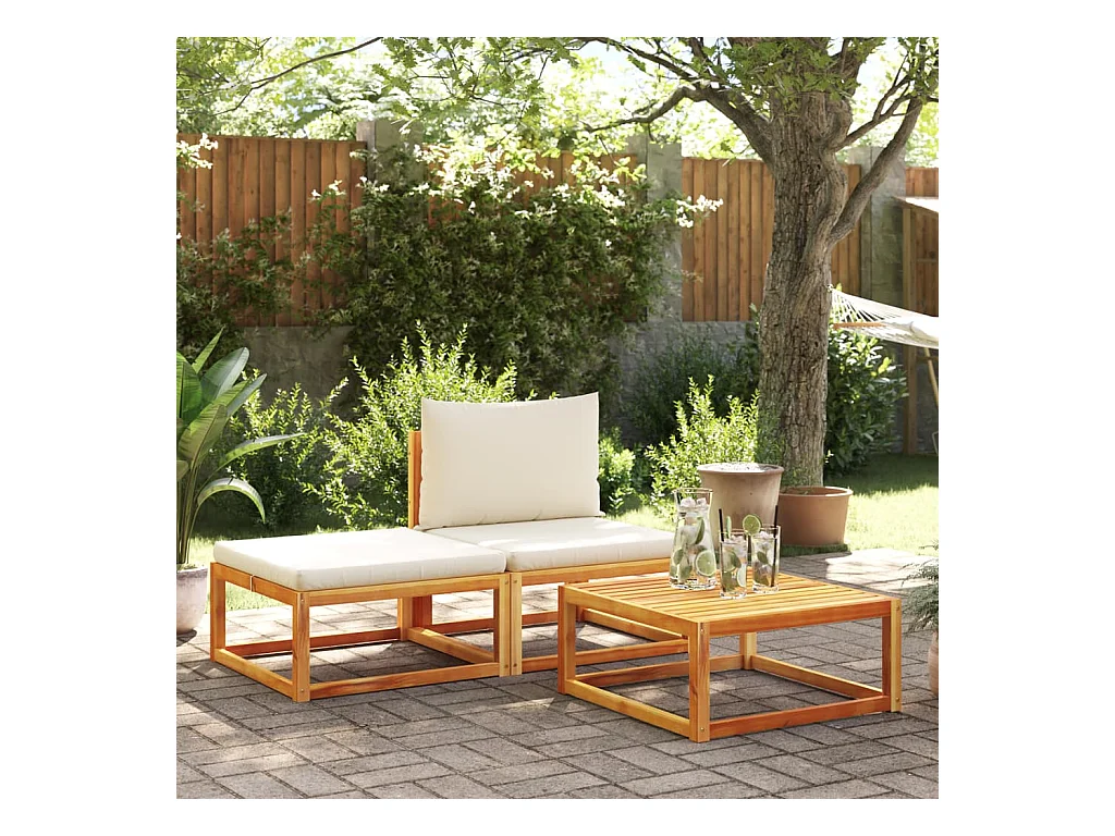 Mobile da giardino con 3 cuscini in legno massello di acacia