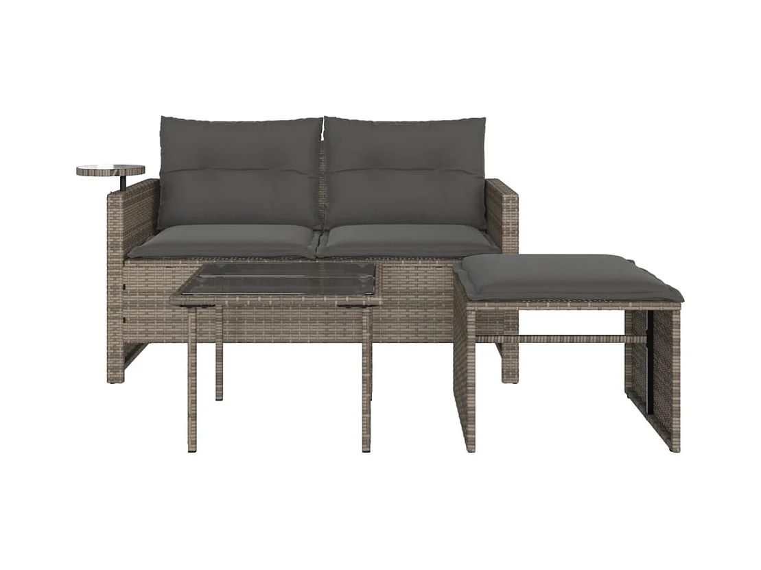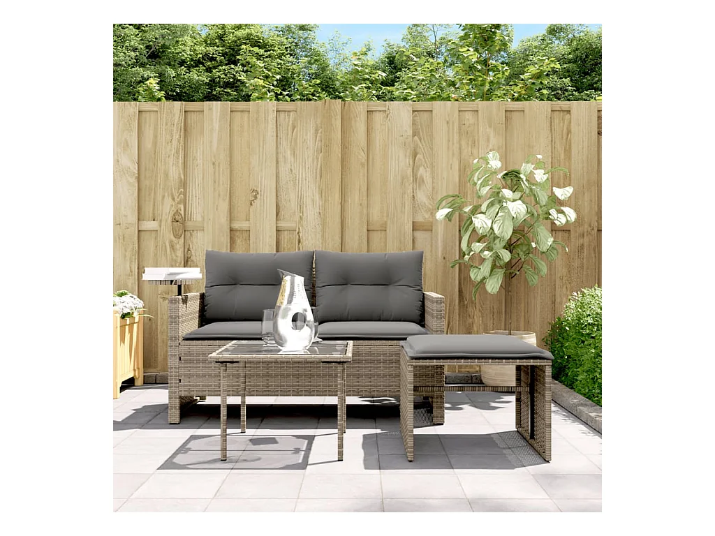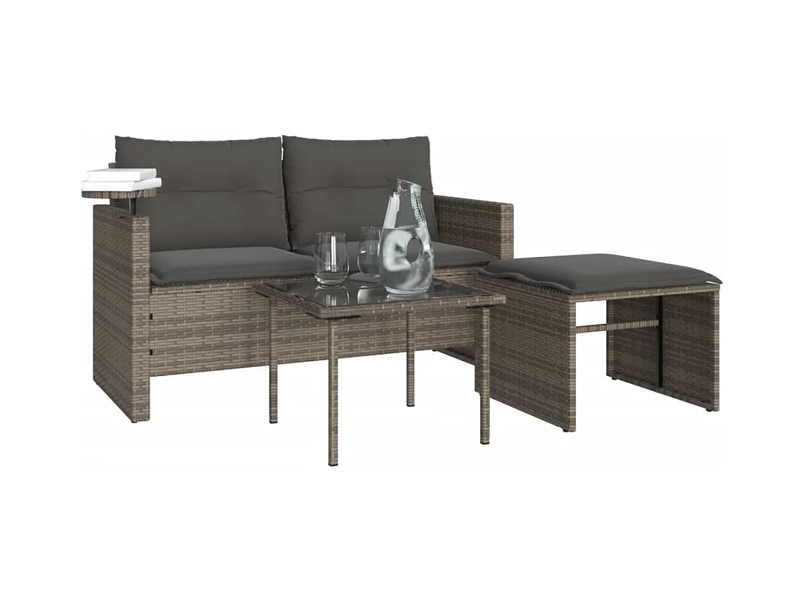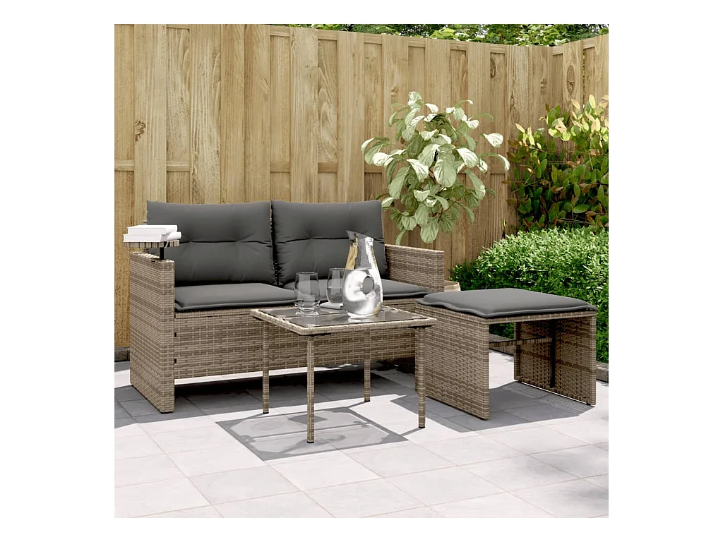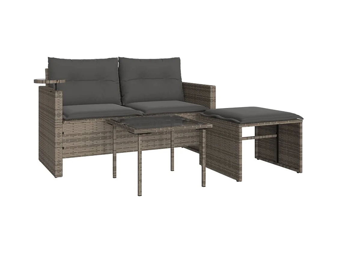 Mobile da giardino con cuscini 3 pezzi in resina intrecciata grigia