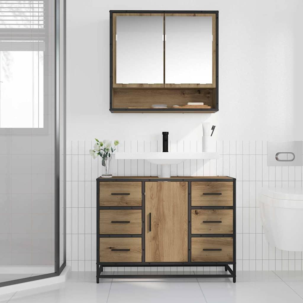 Mobile bagno in rovere Sonoma 80x33x60cm in legno ingegnerizzato