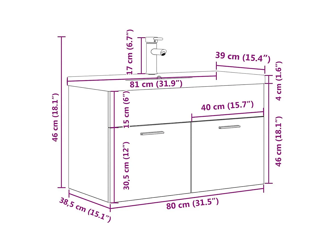 Mobile lavabo da bagno con lavabo e rubinetto integrati