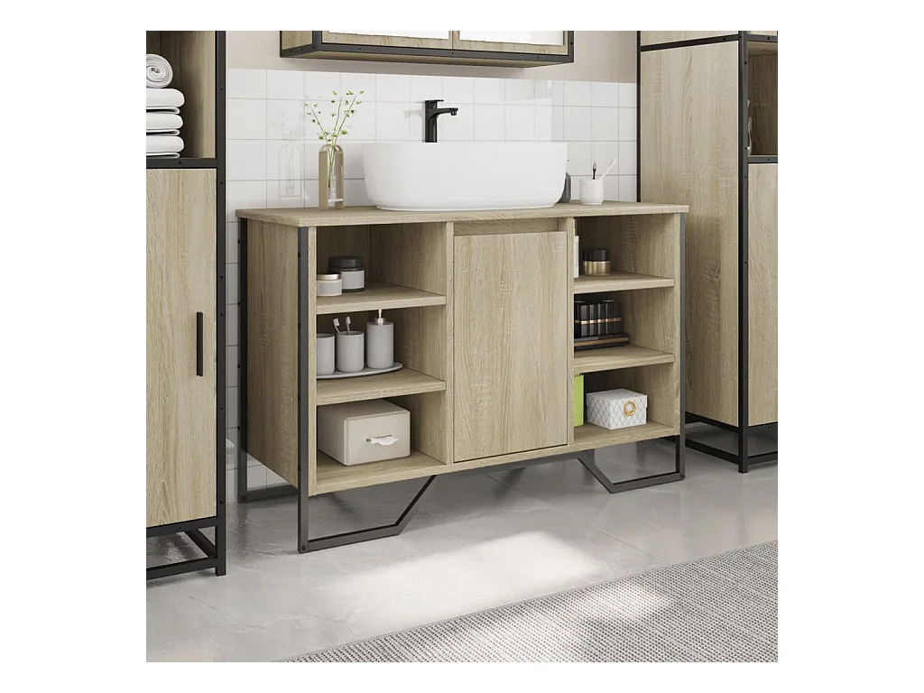 Mobiletto per lavabo da bagno in legno ingegnerizzato di rovere Sonoma