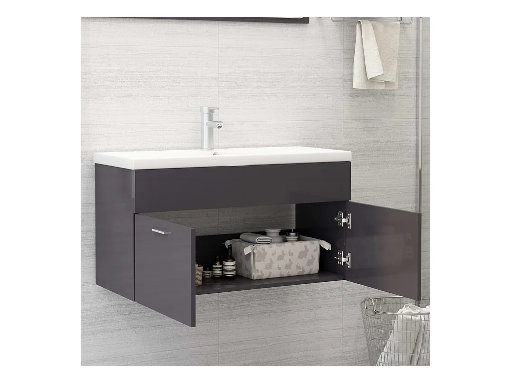 Mobile lavabo Grigio lucido 90x38,5x46 cm MDF