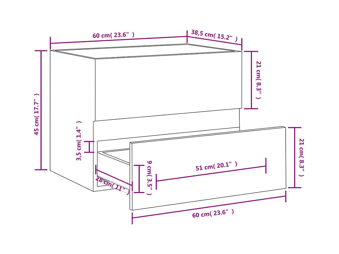 Mobile lavabo nero 60x38,5x46 cm in legno ingegnerizzato