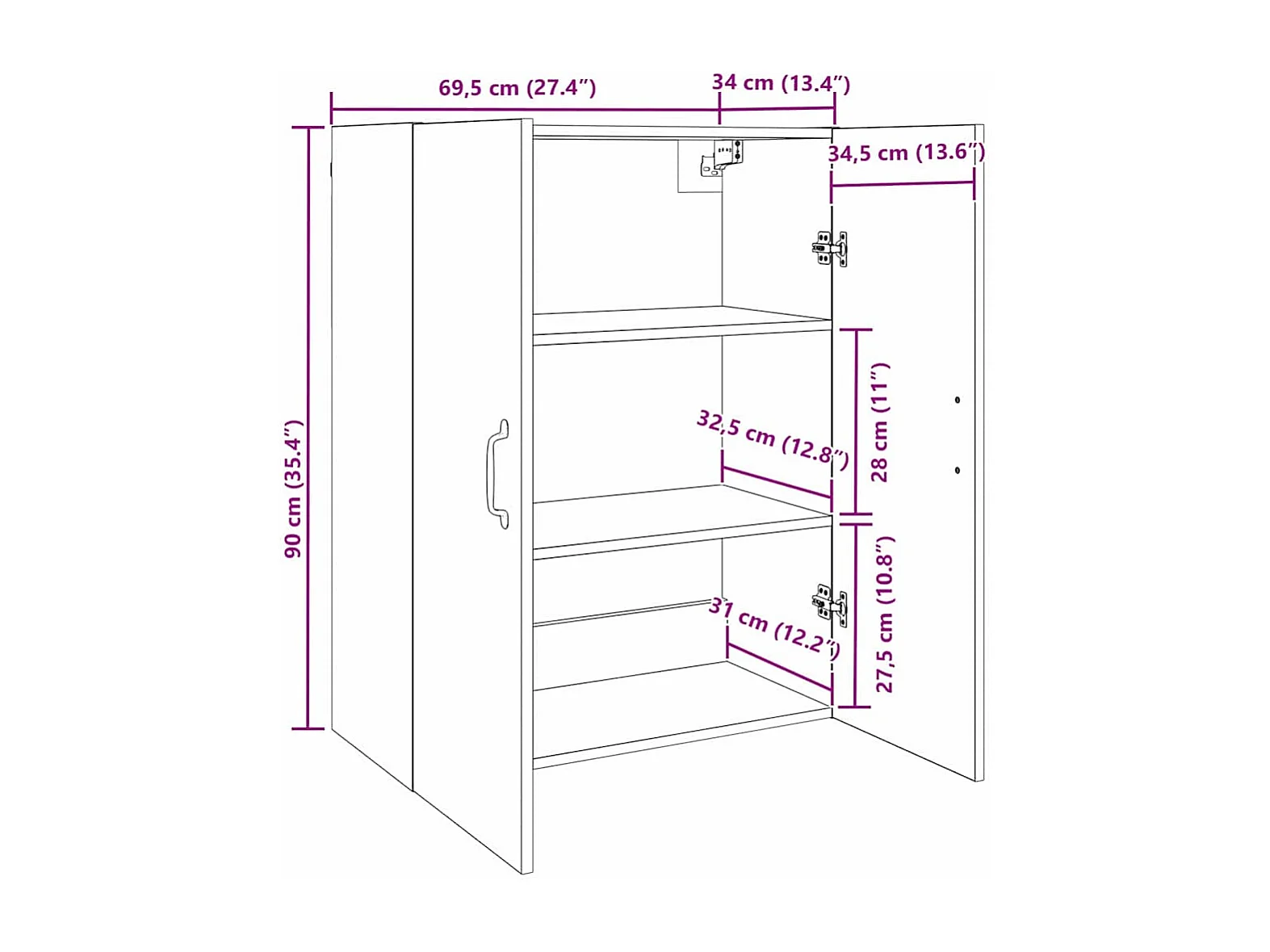 Mobiletto da parete nero 69,5x34x90 cm in legno ingegnerizzato