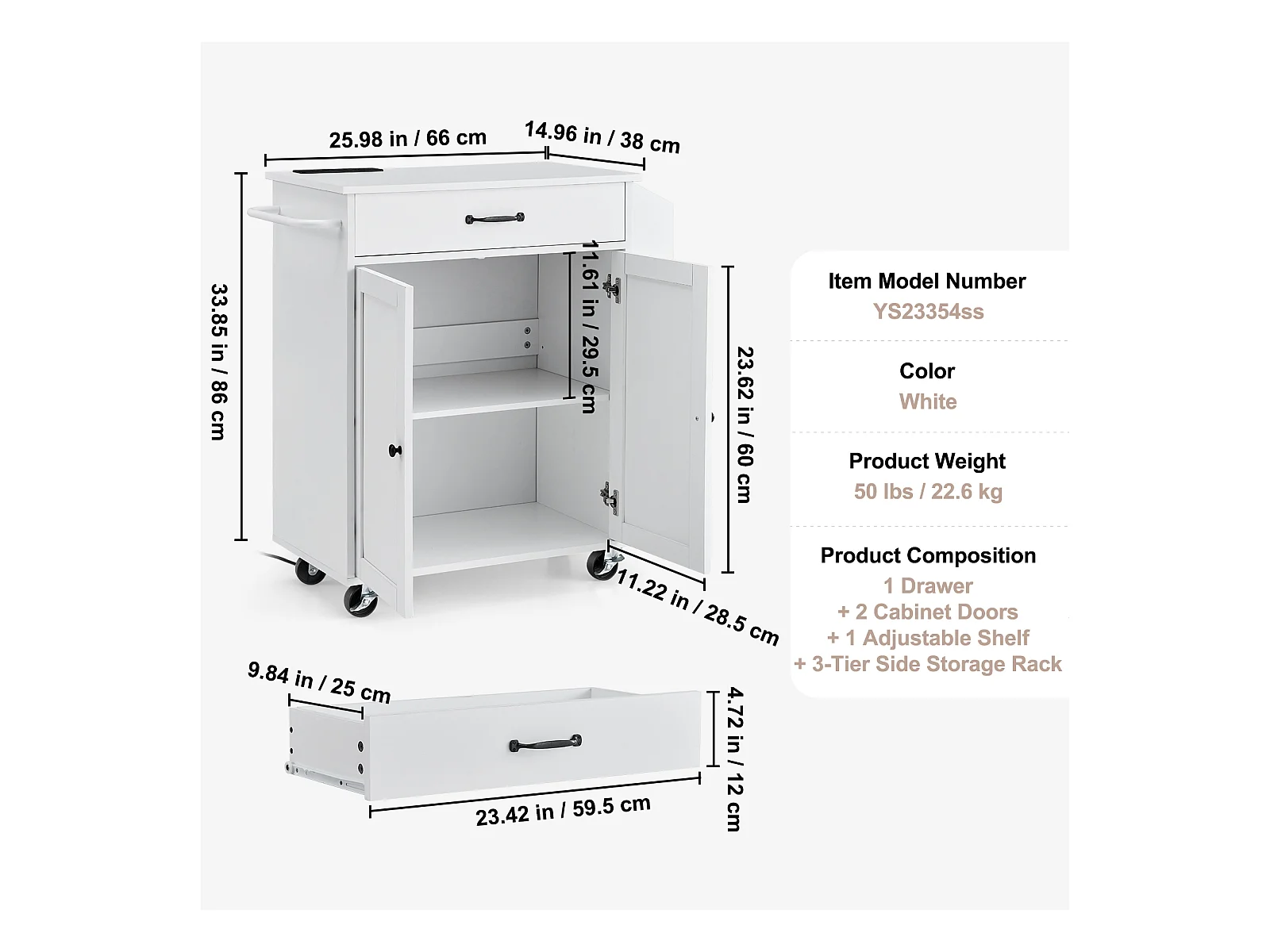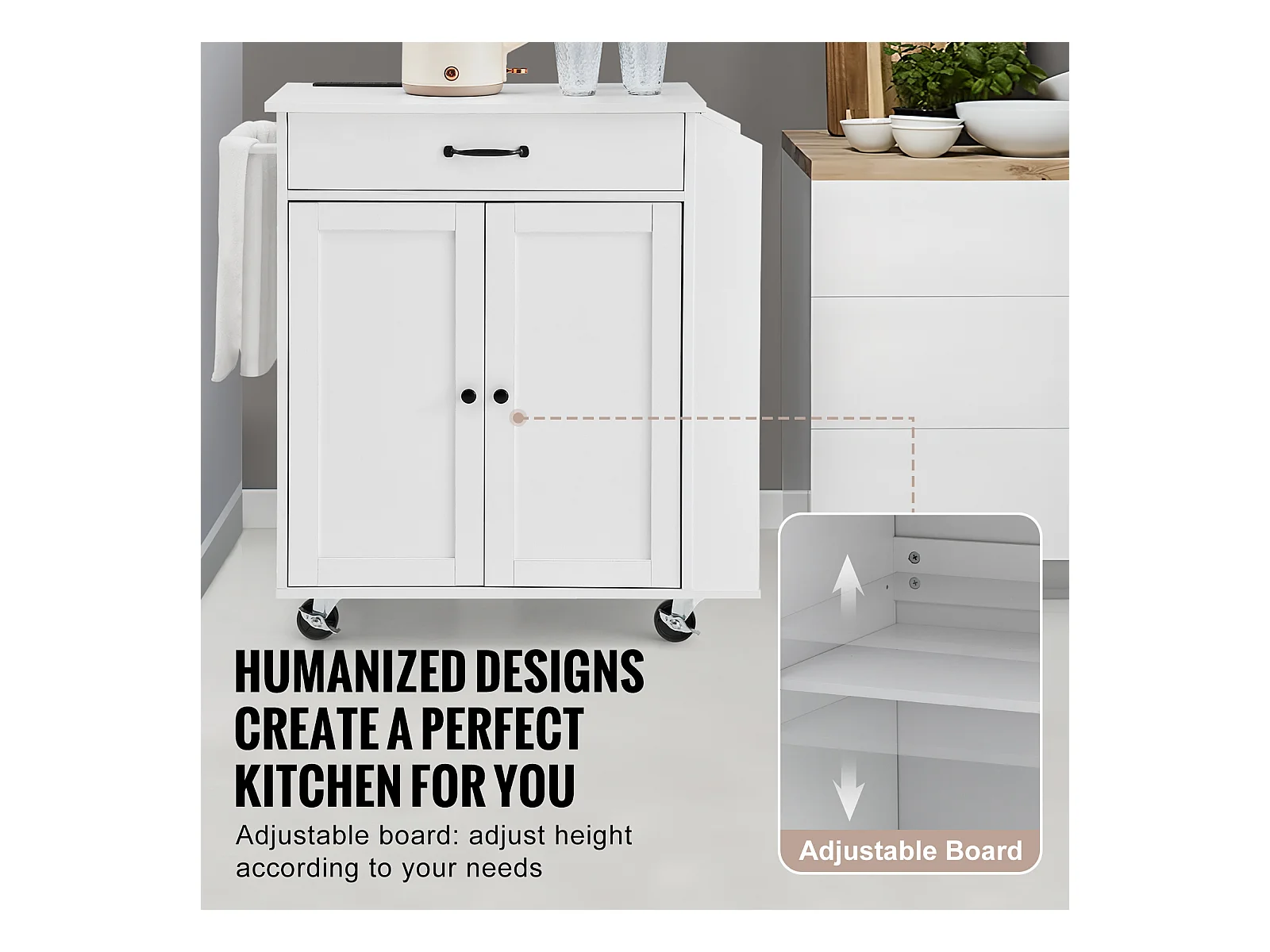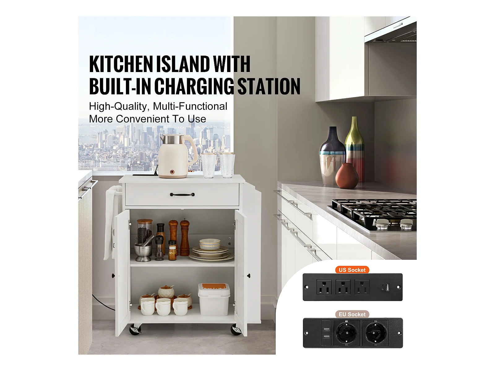 Mobile per Cucina con Ruote SucceBuy, Armadio Roulant con Stazione di Caricamento, Bianco