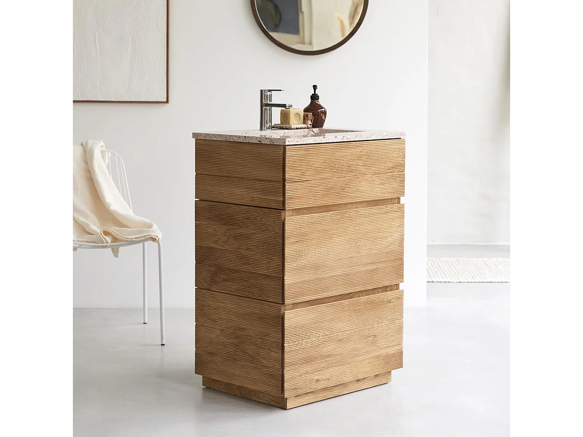 Mobile per il Bagno in legno di rovere e battuto di terrazzo pink da 60 cm