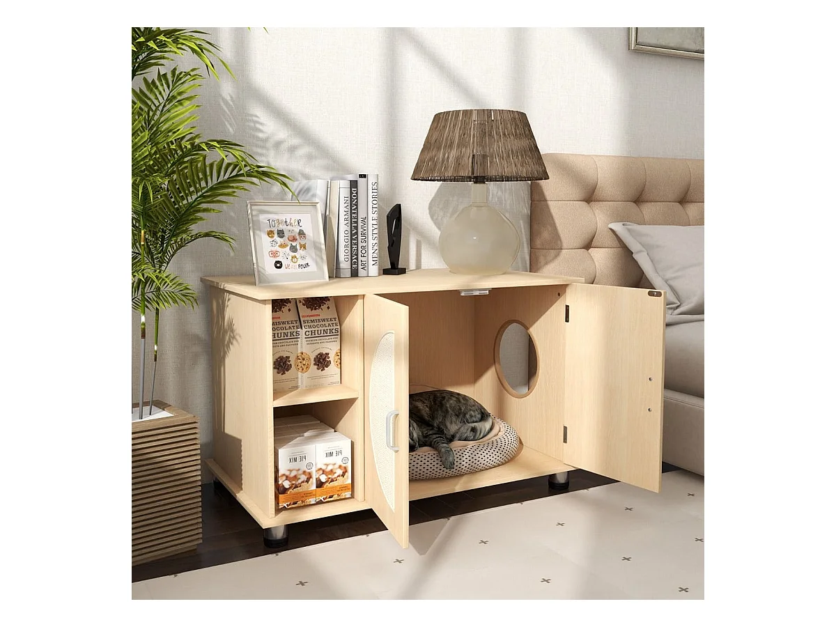 Mobile per lettiera gatto con porte sisal per graffi piedini metallici regolabili, Mobile per lettiera gatto Naturale