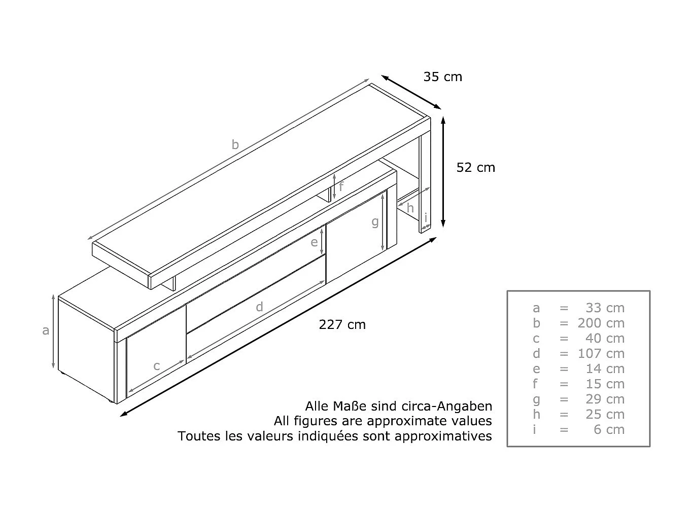Lavagna TV Mogan 181 x 39 x 35 cm, lavagna lunga con 6 scomparti, corpo in antracite opaco, frontali in bianco High Gloss