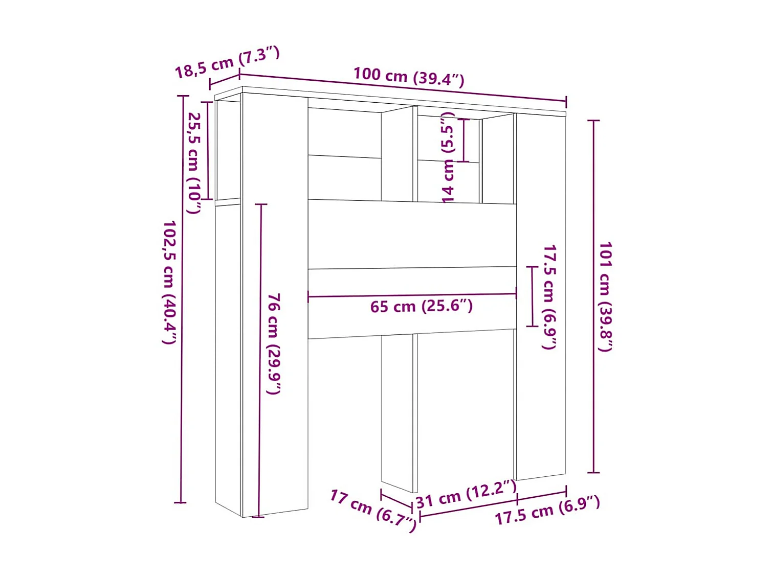 Mobile testiera in rovere Sonoma 100x18,5x102,5 cm
