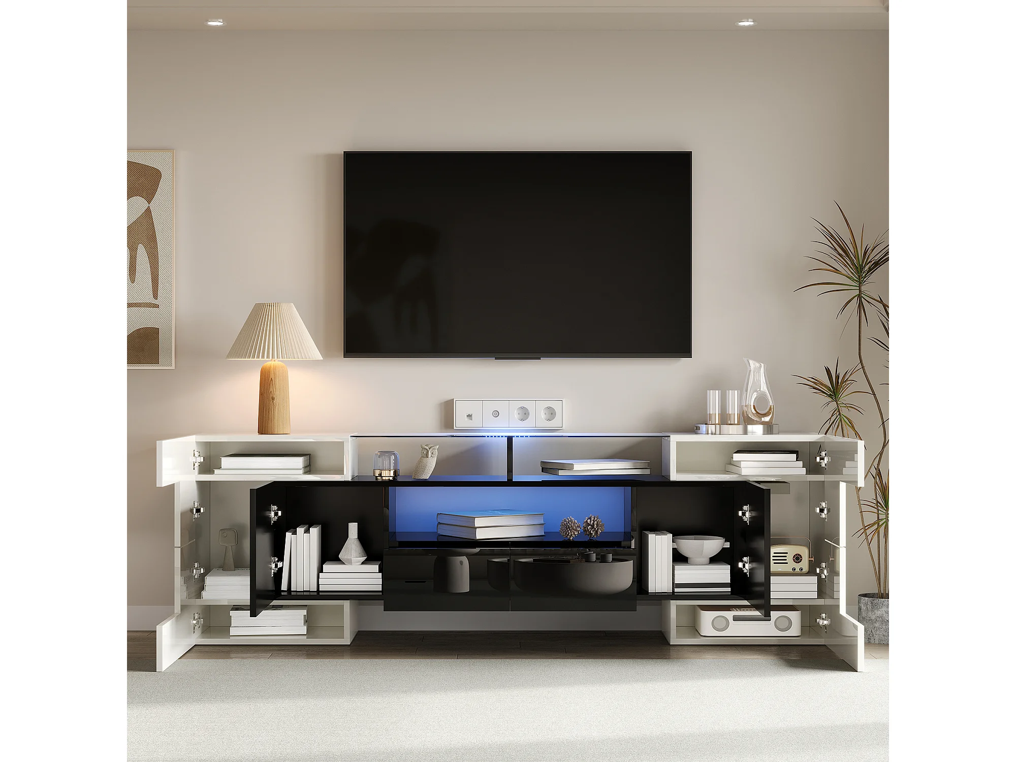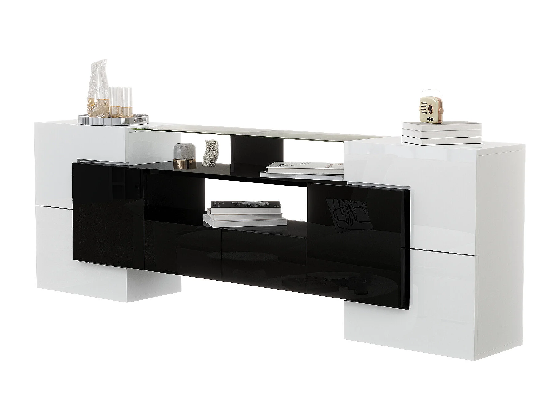 Mobile TV con 3 ante e 2 cassetti - 190 x 35 x 45 cm - Truciolare - Bianco + nero