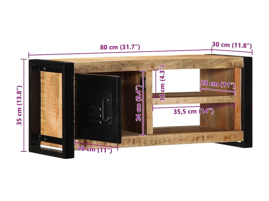Mobile TV 80x30x35 cm in legno massello di mango grezzo