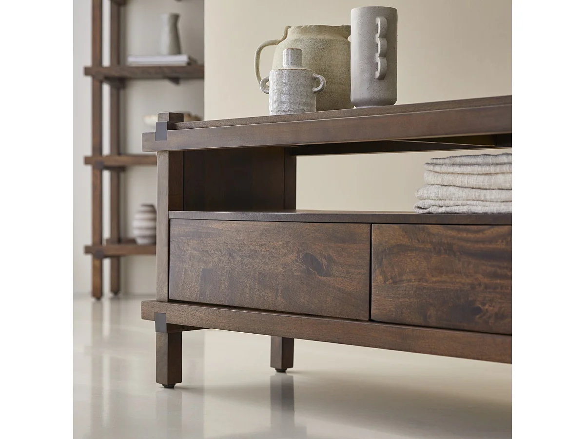 Mobile TV a 2 cassetti in legno di mango Arko