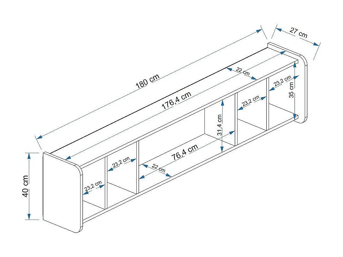 Mobile TV moderno – 176 x 39 x 31,5 cm – Bianco e Teak – Pannello truciolare rivestito in melaminico