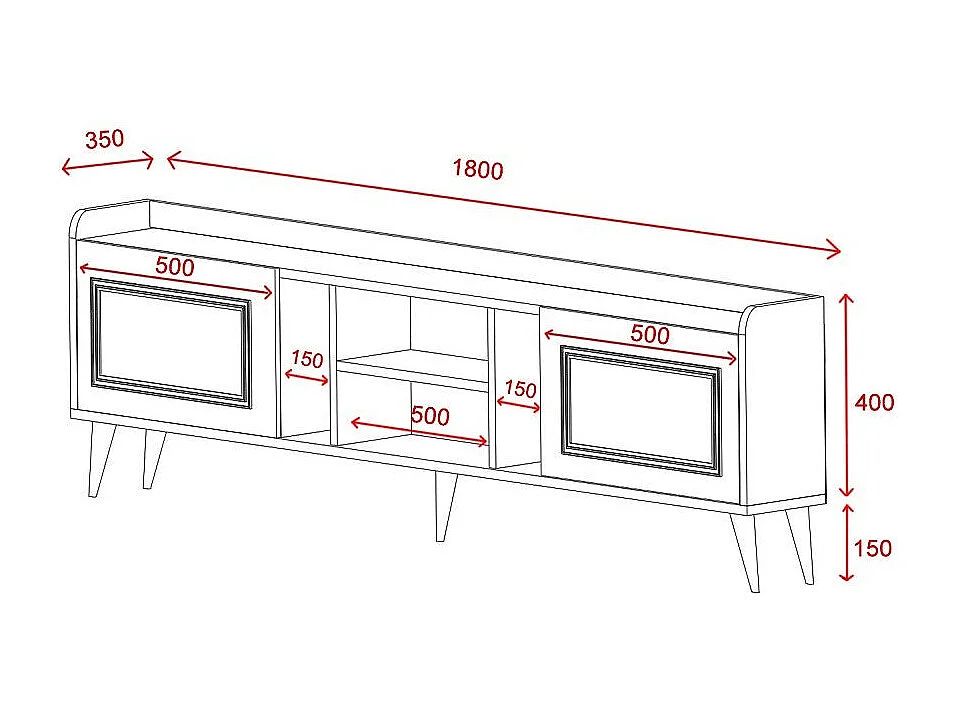 Mobile TV – 150 cm x 44,6 cm x 29,6 cm – Bianco – Pannello truciolare