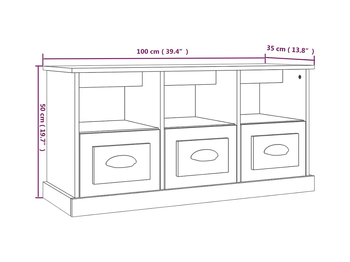 Mobile TV ALTA bianco e cassetti 100x35x41 cm in legno massello di pino