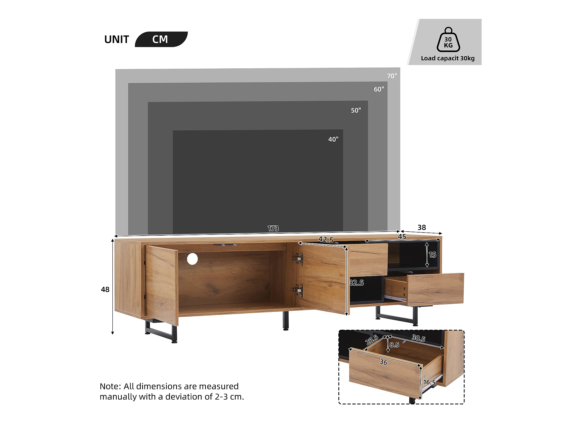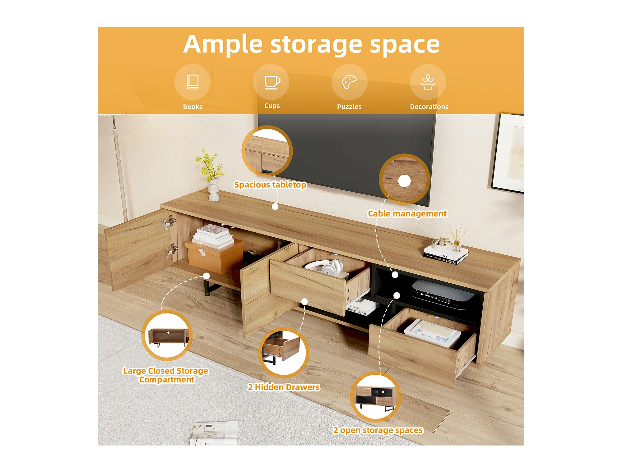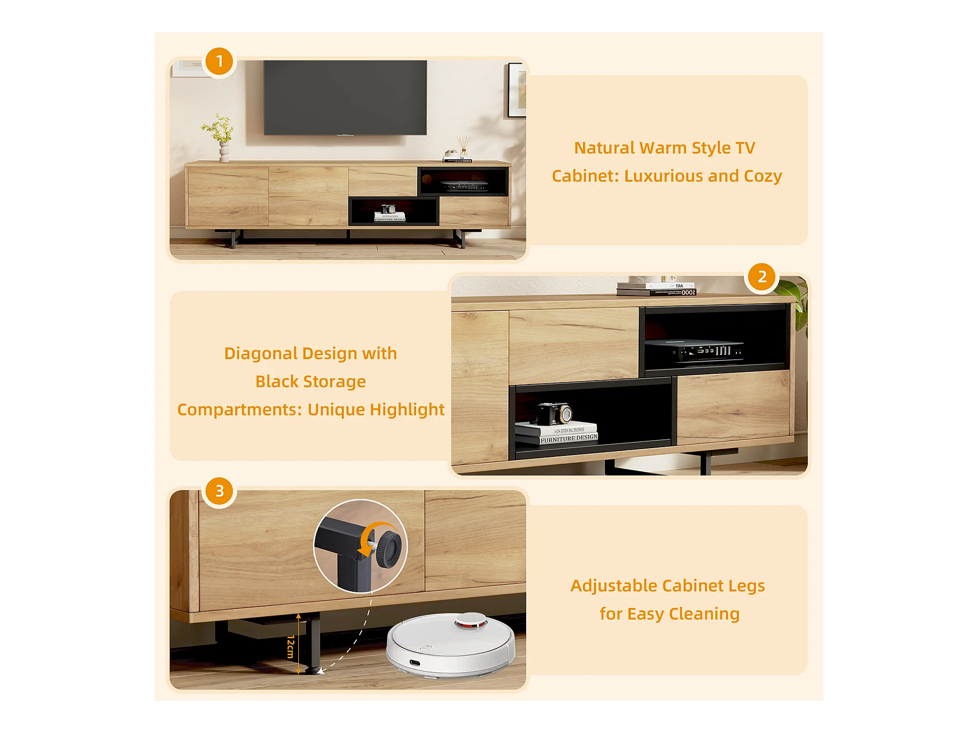 Mobile TV moderno 180x40x50 cm - riposto per animali domestici - con illuminazione a LED - 1 cassetto e 2 ante - colore naturale