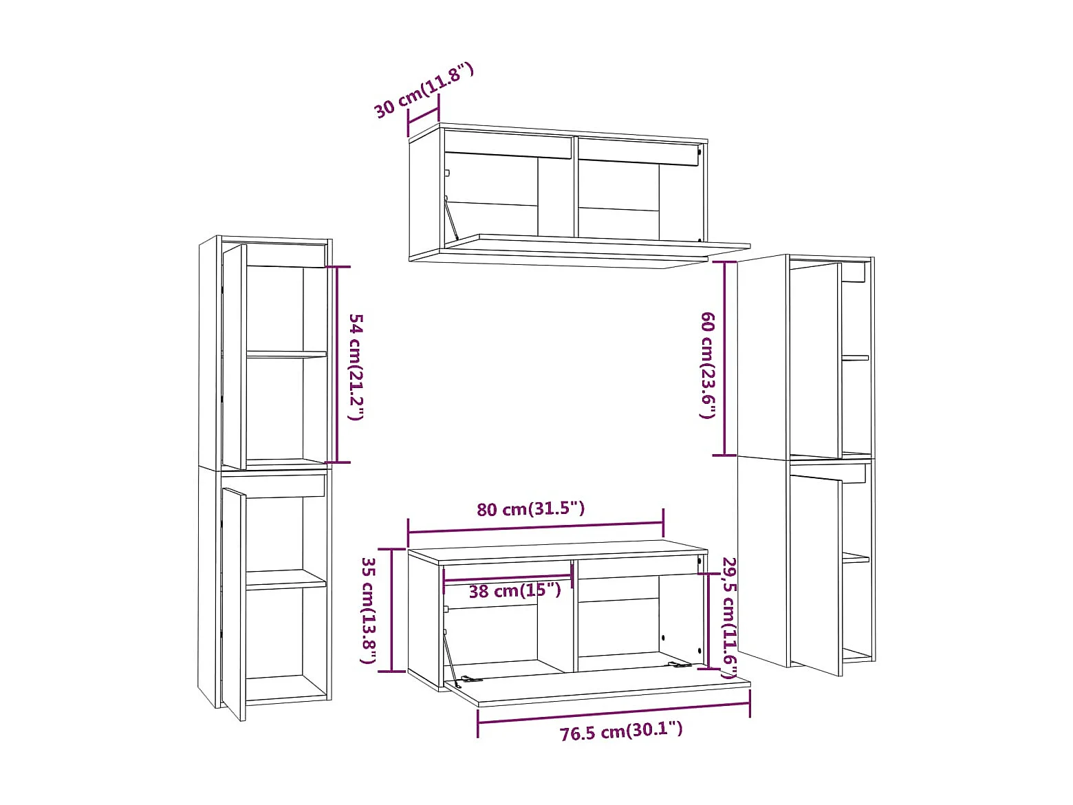 Set di mobili TV da 5 pezzi, legno anticato, 30,5 x 30 x 60 cm