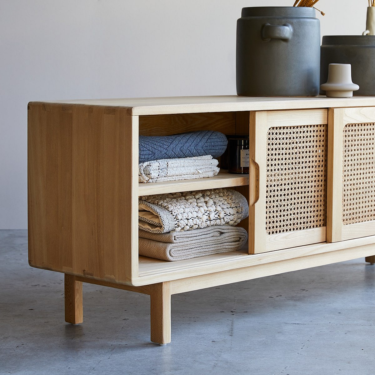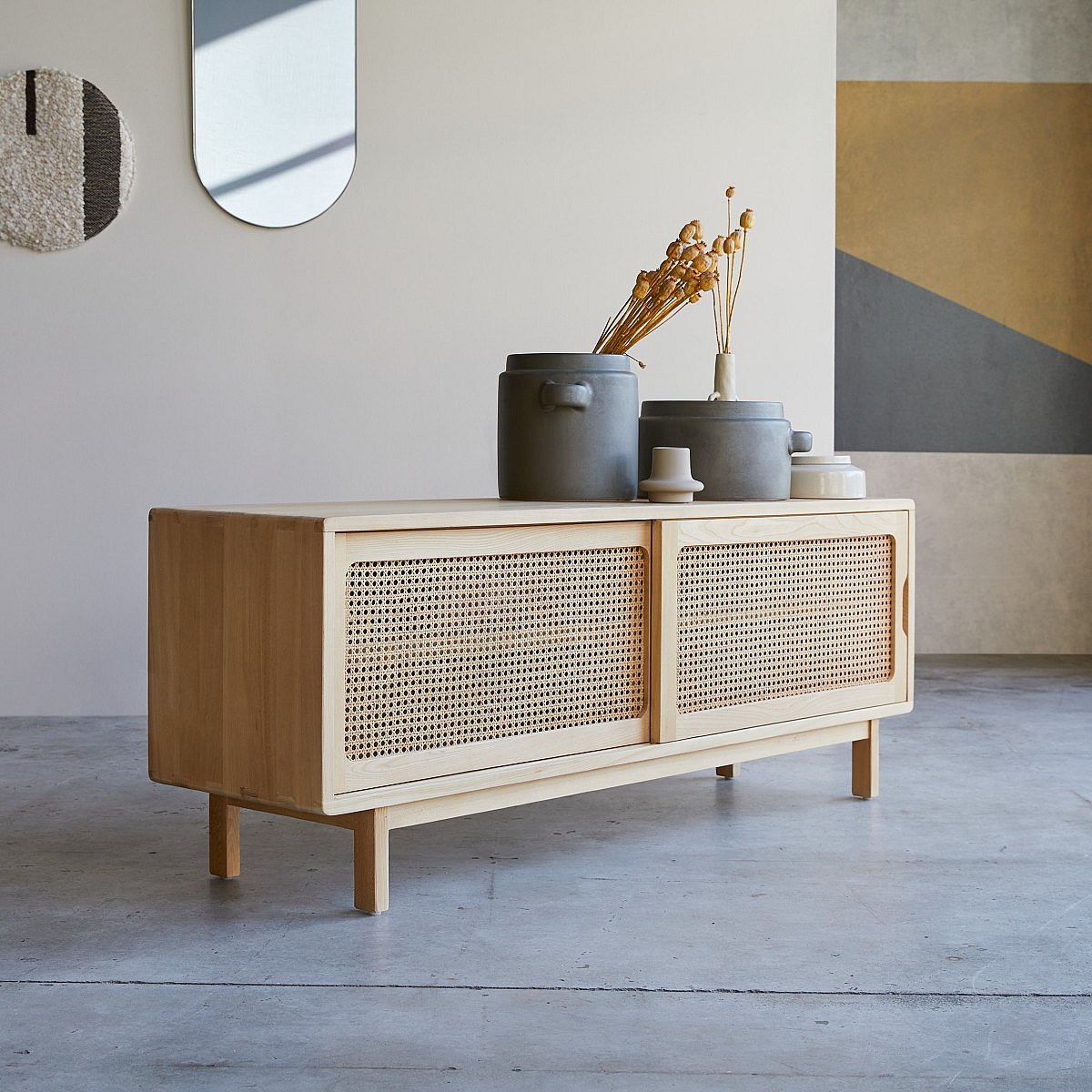 Mobile TV in legno di olmo e canna Luis 140 cm