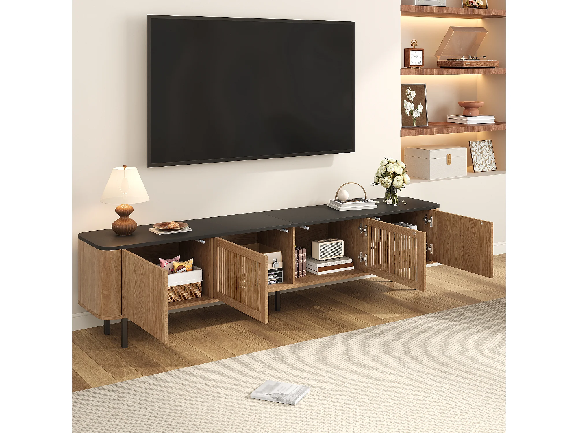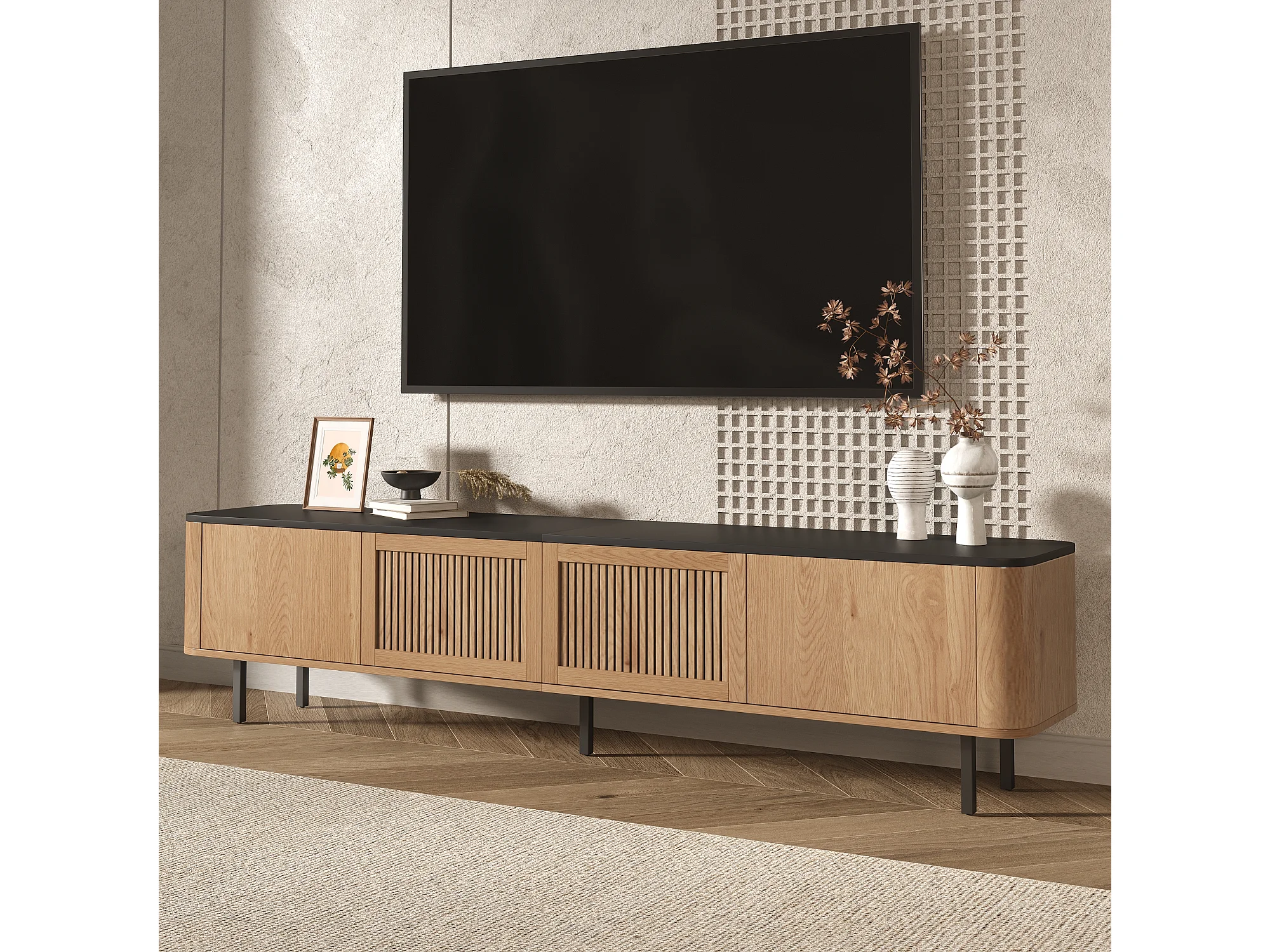 Mobile TV moderno - 190 x 35 x 45 cm - con 4 ante - Design unico - MDF + truciolato - naturale