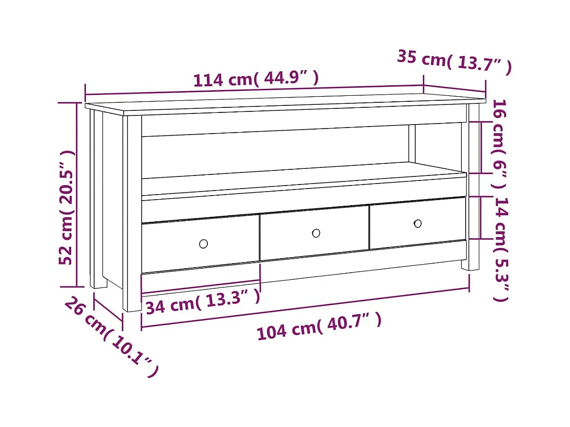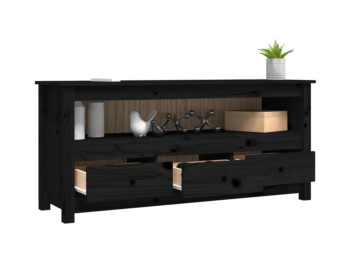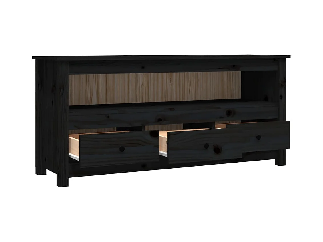 Mobile TV nero 114x35x52 cm Legno massello di pino
