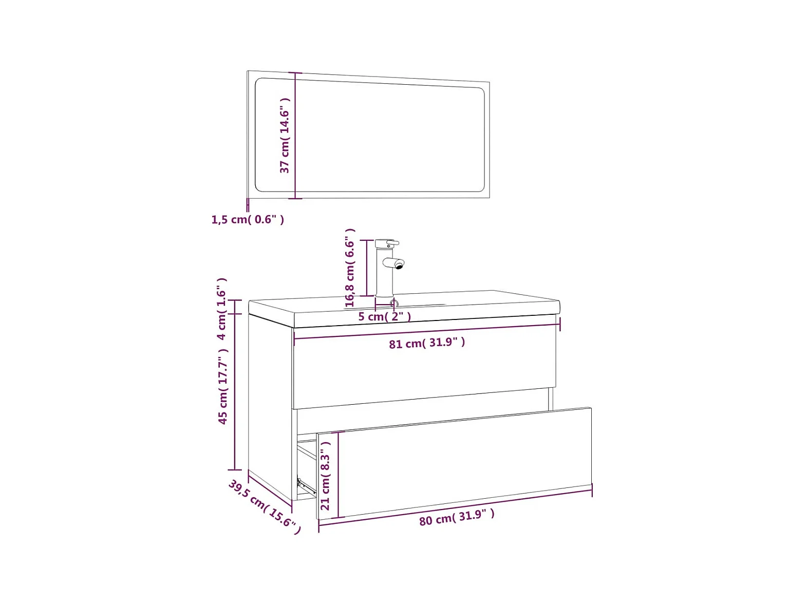 Mobile lavabo bagno rovere marrone 80x30x60 cm