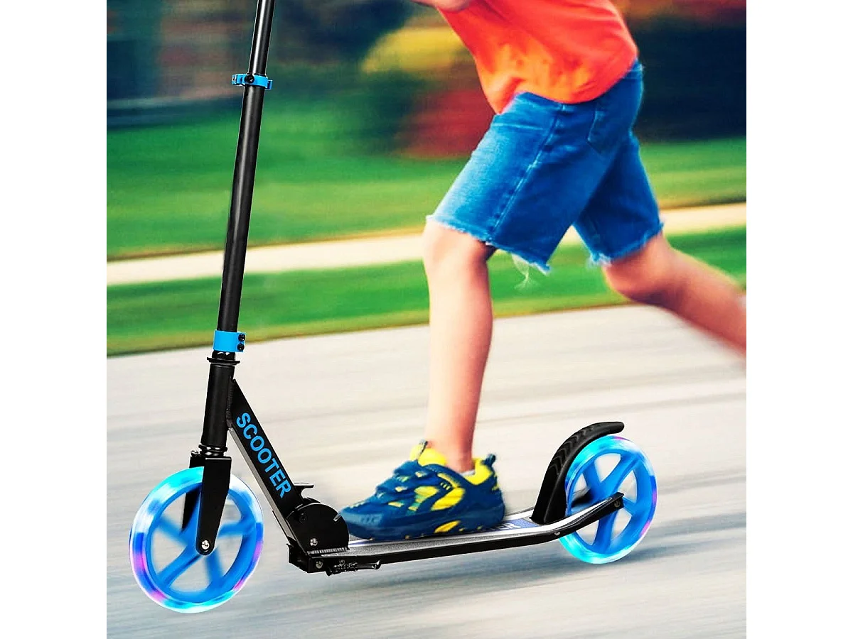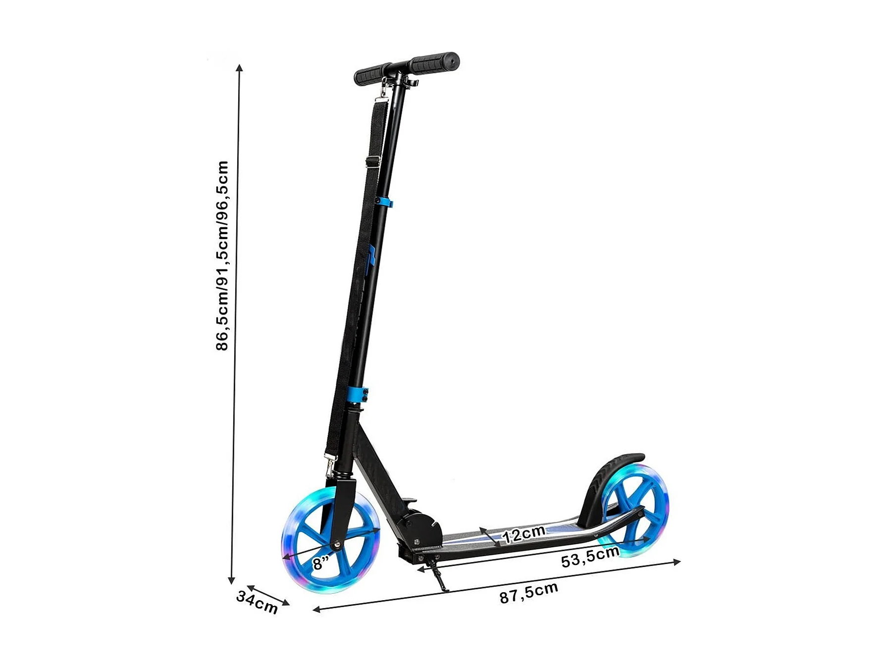 Monopattino con pedana in alluminio, Manubrio regolabile in 3 posizioni e cinghia, Blu