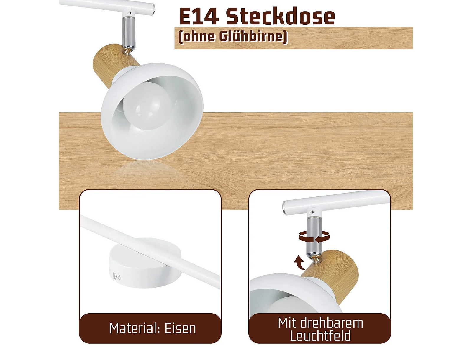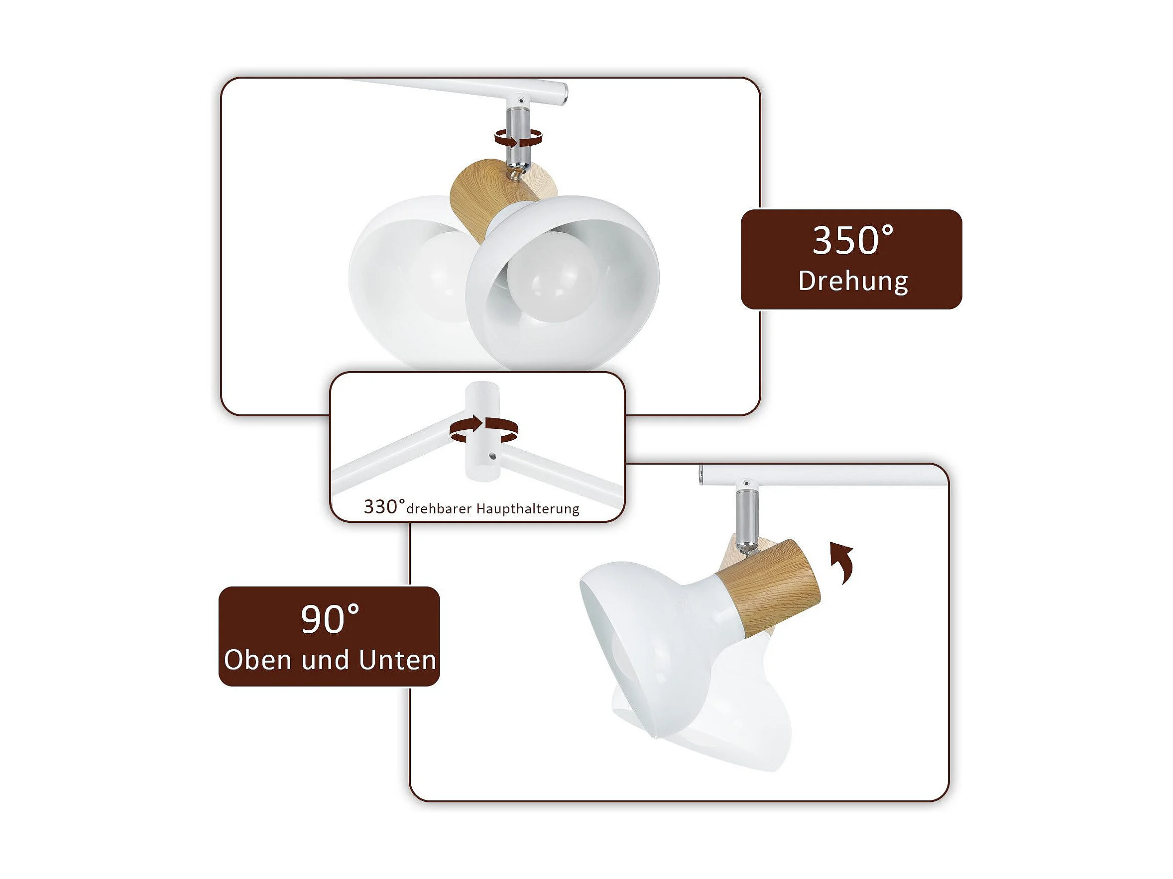 NETTLIFE Faretto da soffitto vintage E14 per interni, orientabile a 350°, bianco, stile industriale, 6 luci