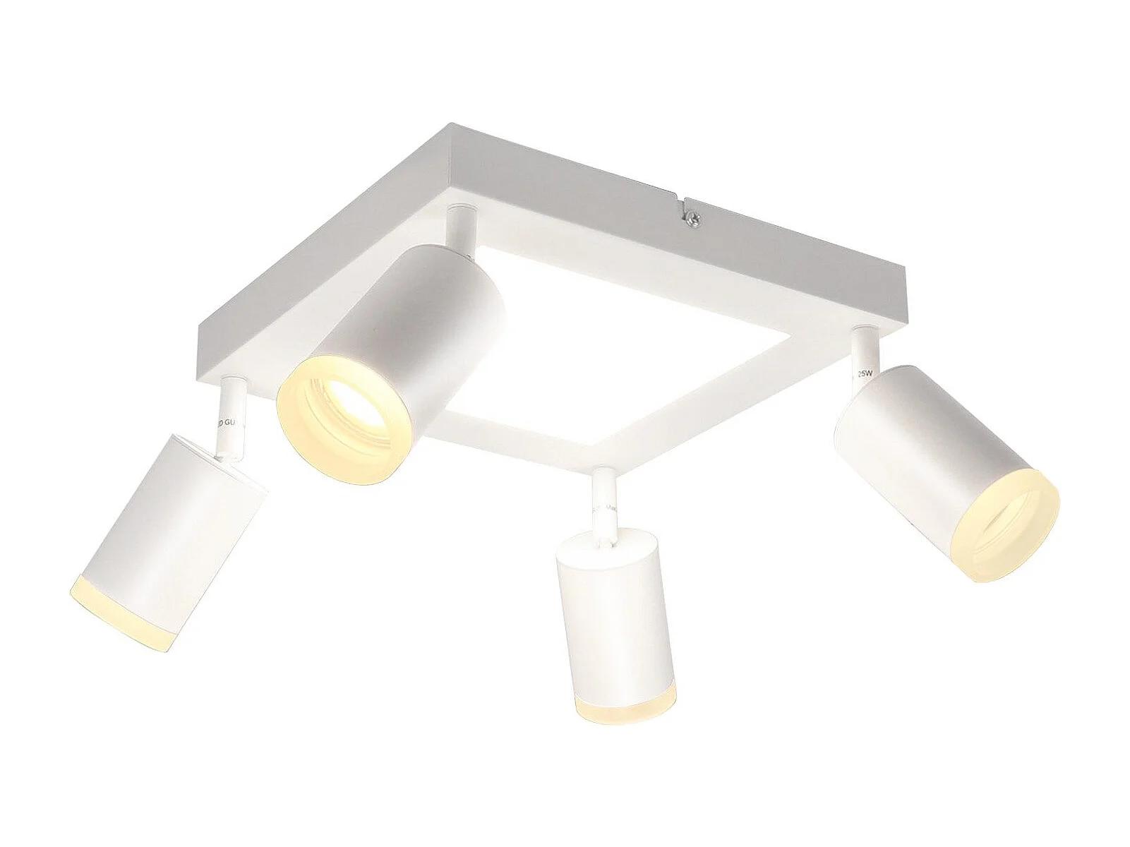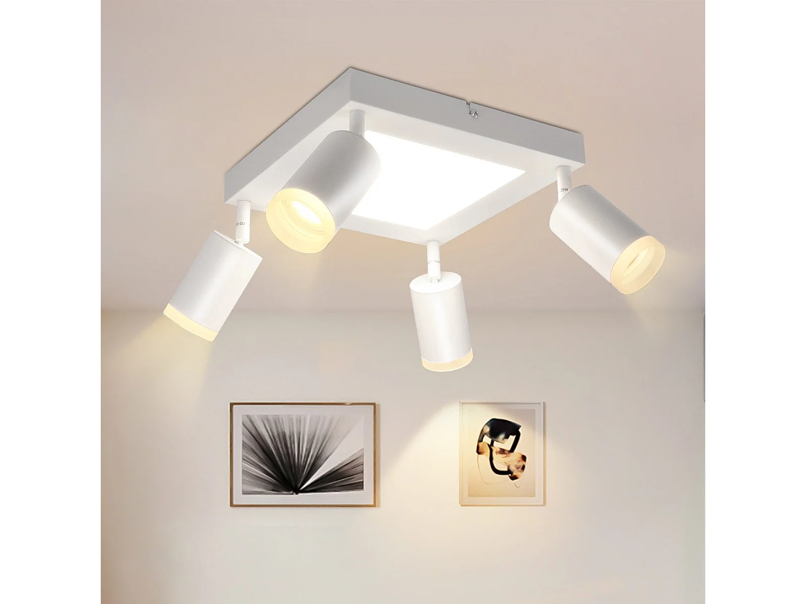 NETTLIFE Faretto quadrato da soffitto a 4 lampadine, 3000K GU10, facile installazione, bianco caldo, orientabile a 350°, moderno