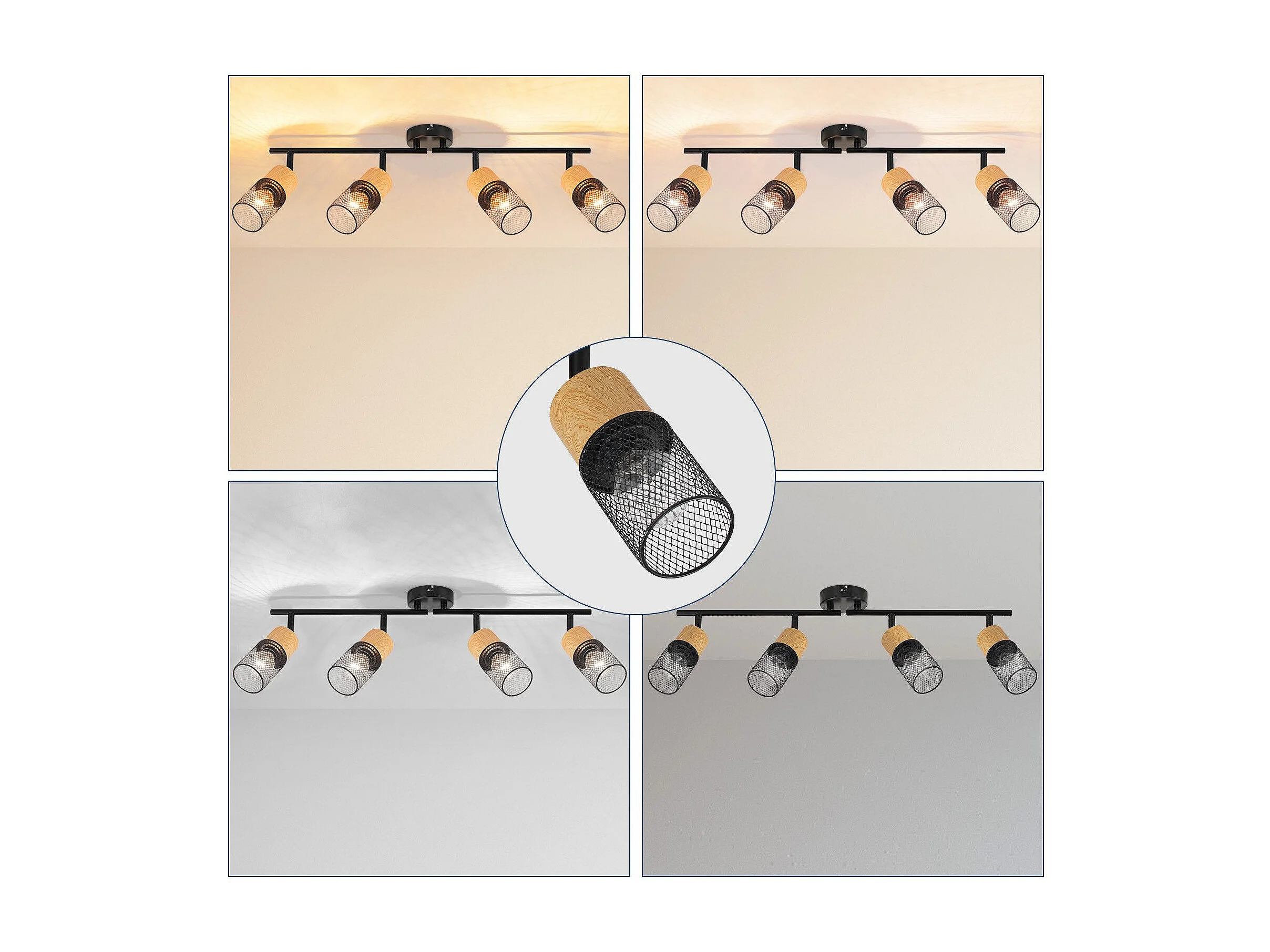 NETTLIFE Plafoniera in legno E14 350° orientabile, lampada da soffitto vintage, lampada da parete regolabile senza lampadina