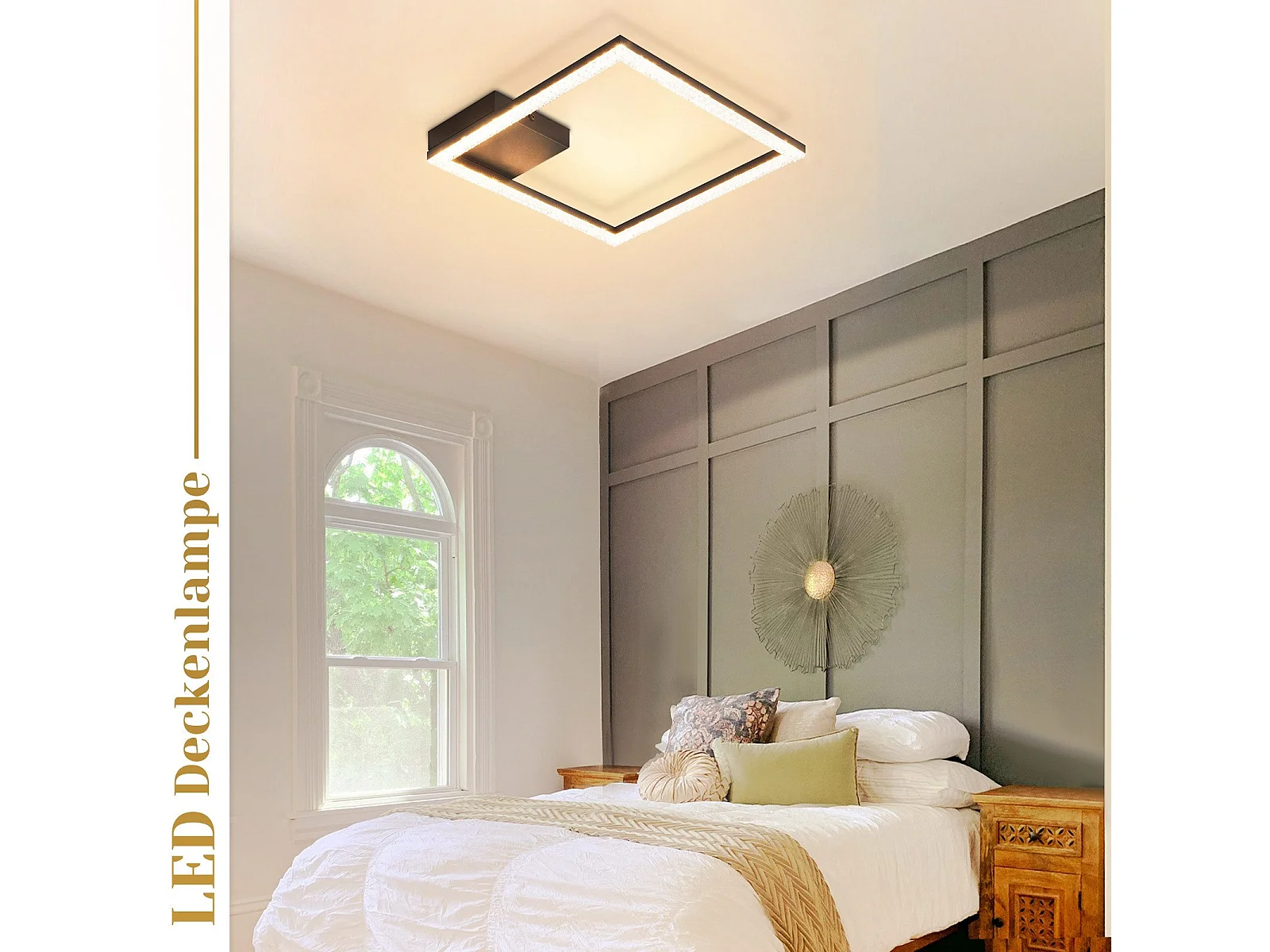 NETTLIFE Plafoniera LED 12W Quadrata Cristallo Bianca Calda 3000K Metallo Nero Moderna Lampada da Soffitto per Soggiorno Camera da Letto Corridoio Cucina