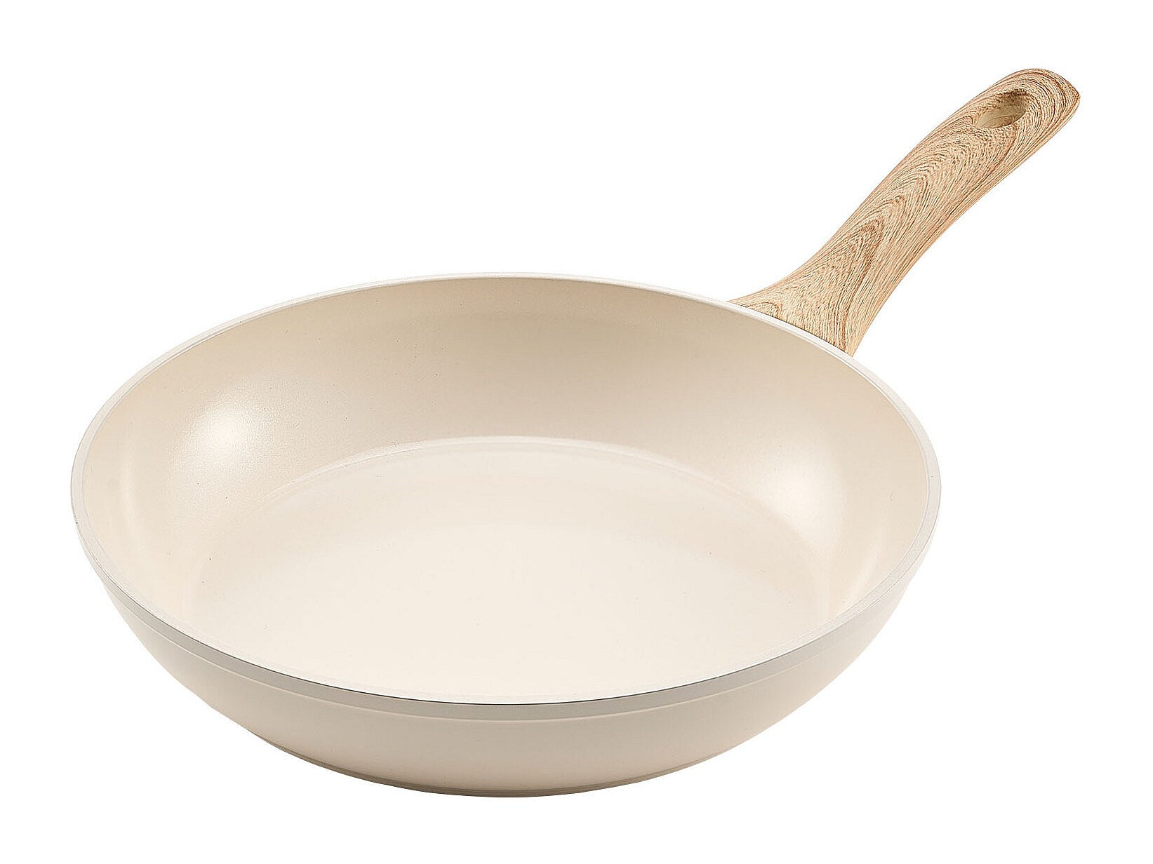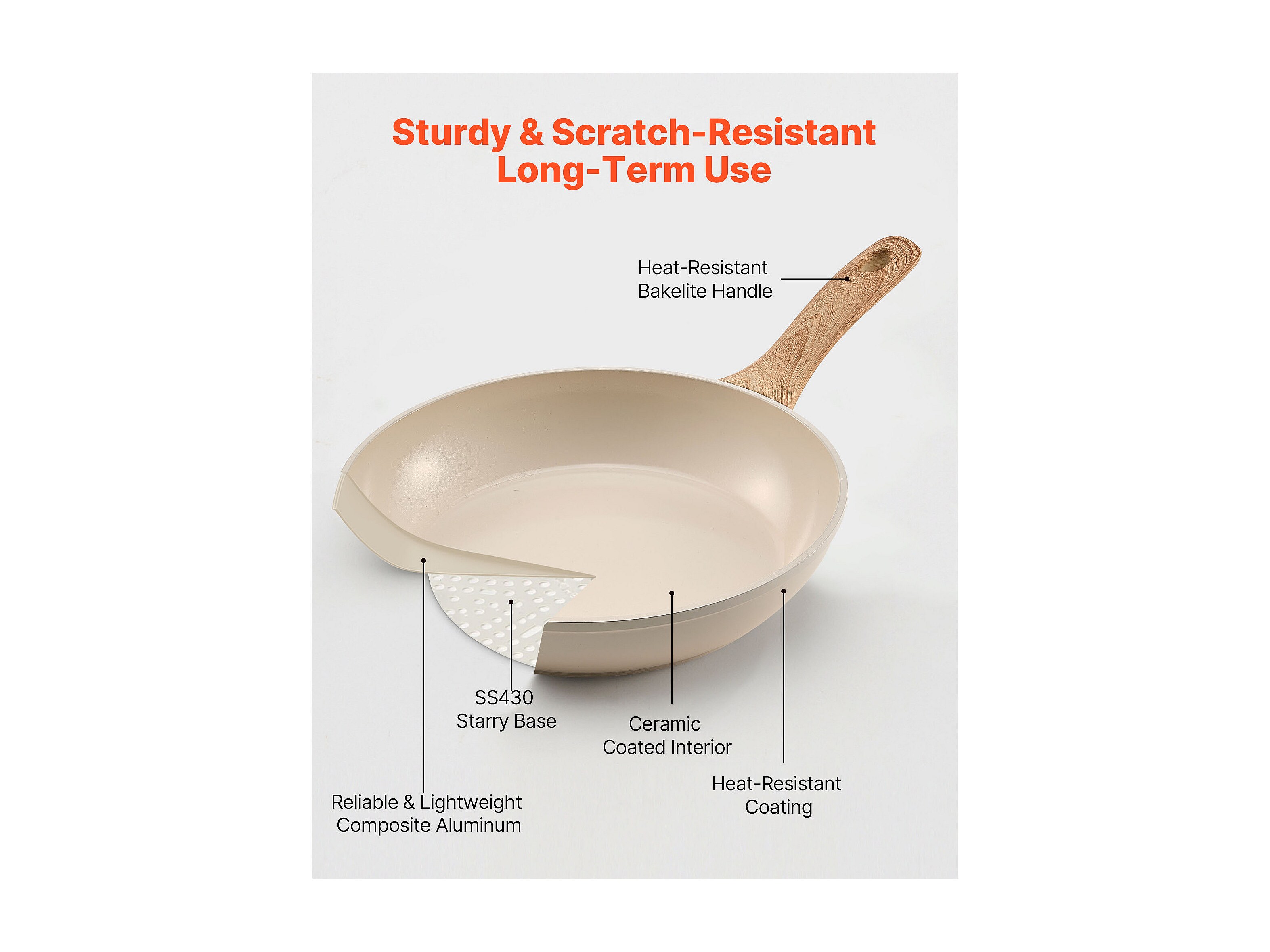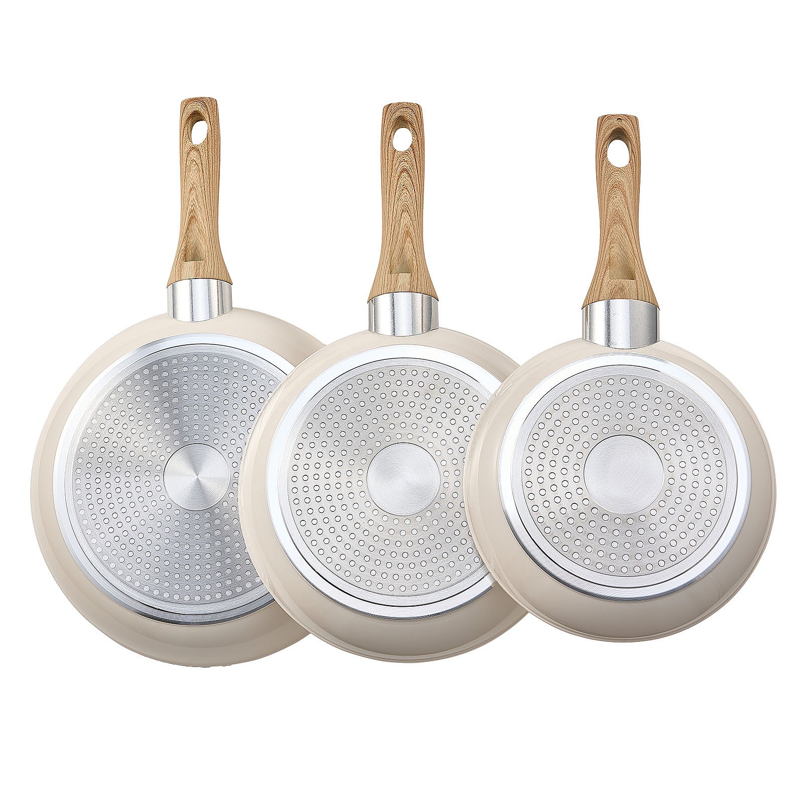 Padella in Alluminio SucceBuy, 3 Pezzi 20/24/28 Cm, Padella Antiaderente in Ceramica con Manico Resistente al Calore, per Gas, Elettrico, Beige