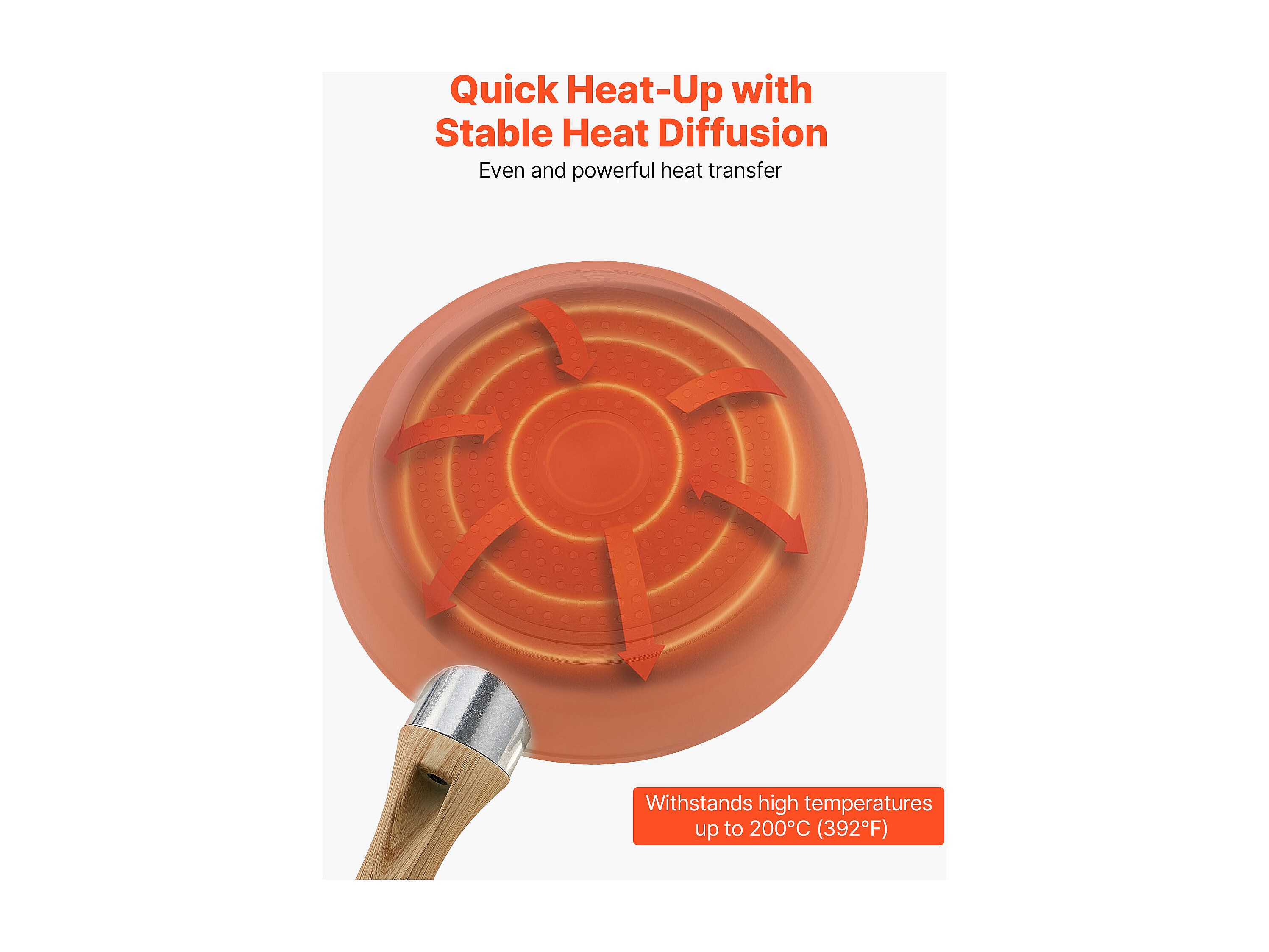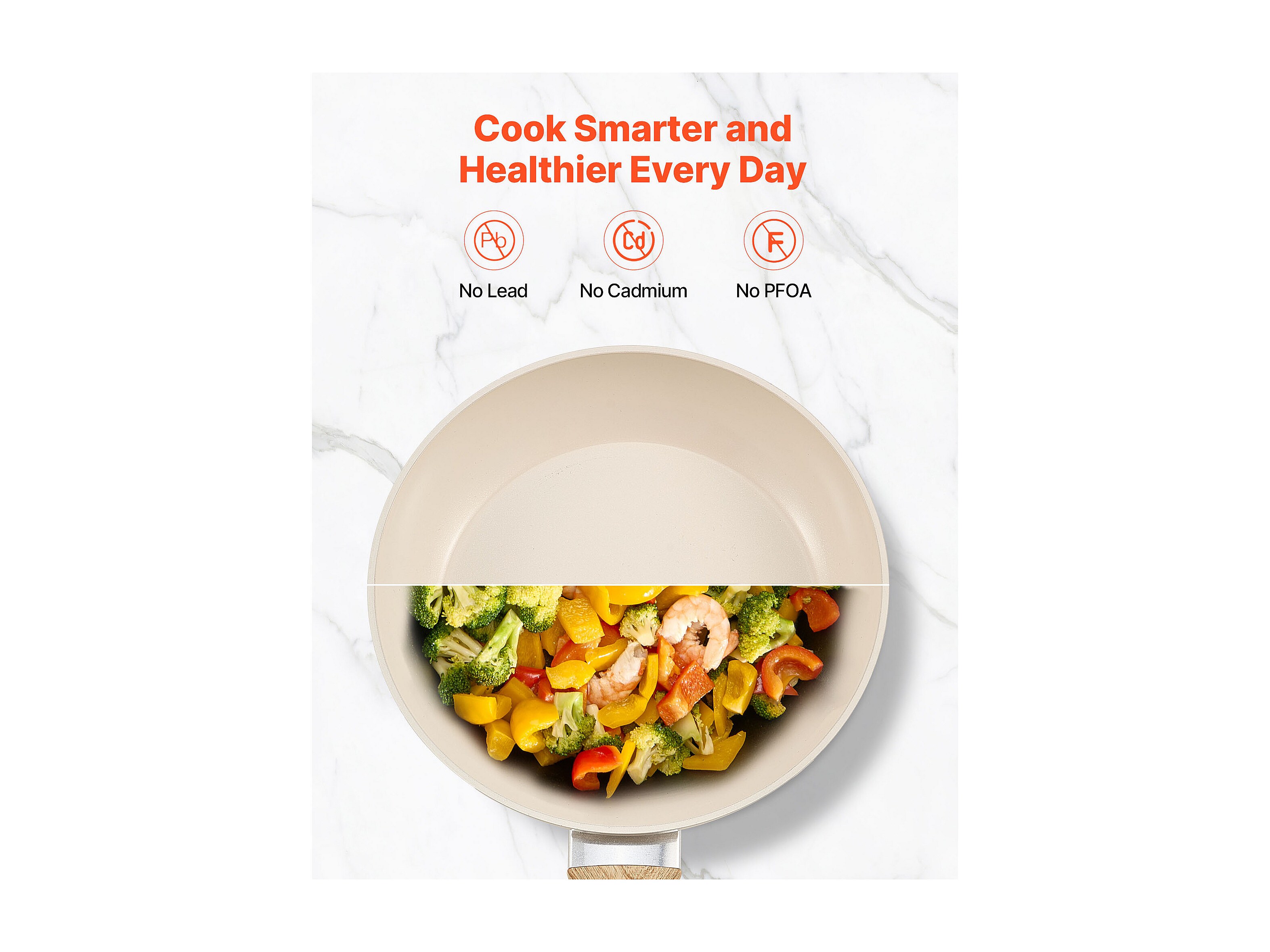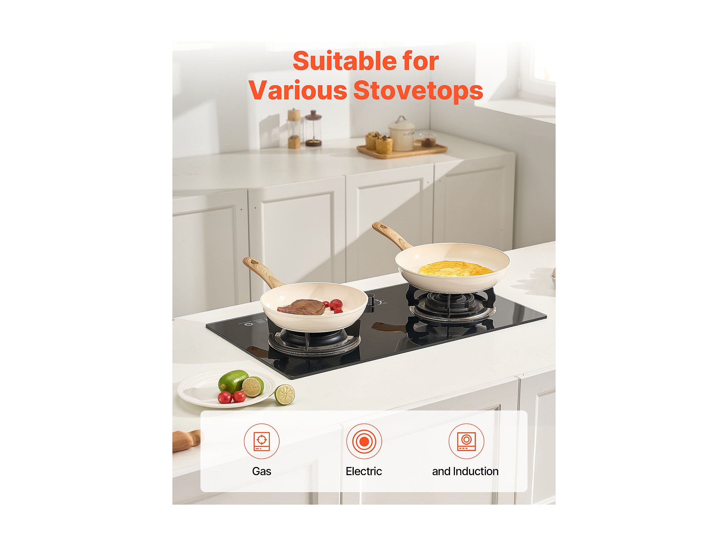 Padella in Alluminio SucceBuy, 3 Pezzi 20/24/28 Cm, Padella Antiaderente in Ceramica con Manico Resistente al Calore, per Gas, Elettrico, Beige