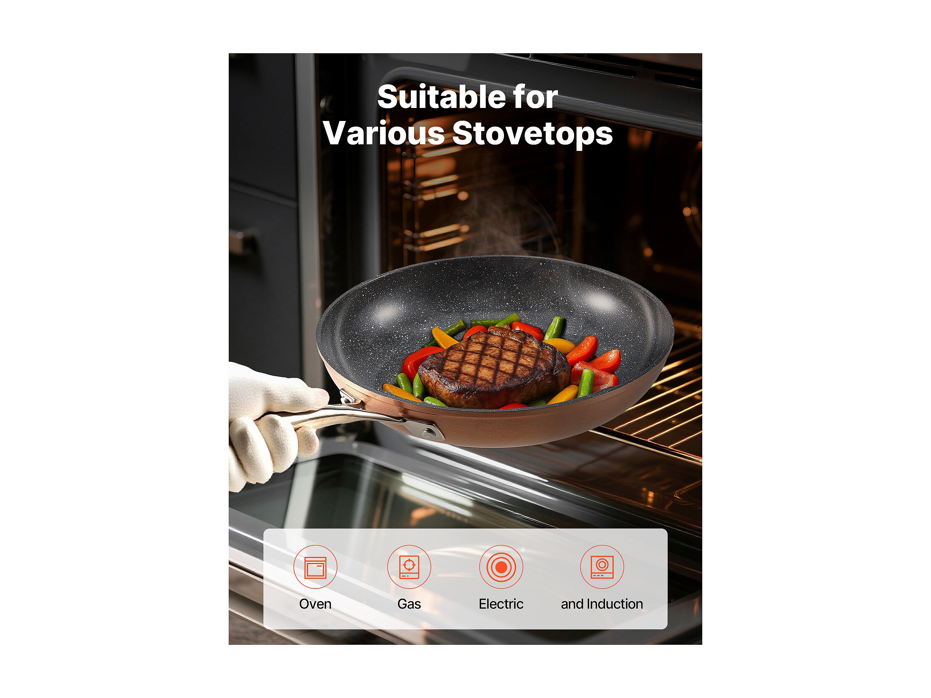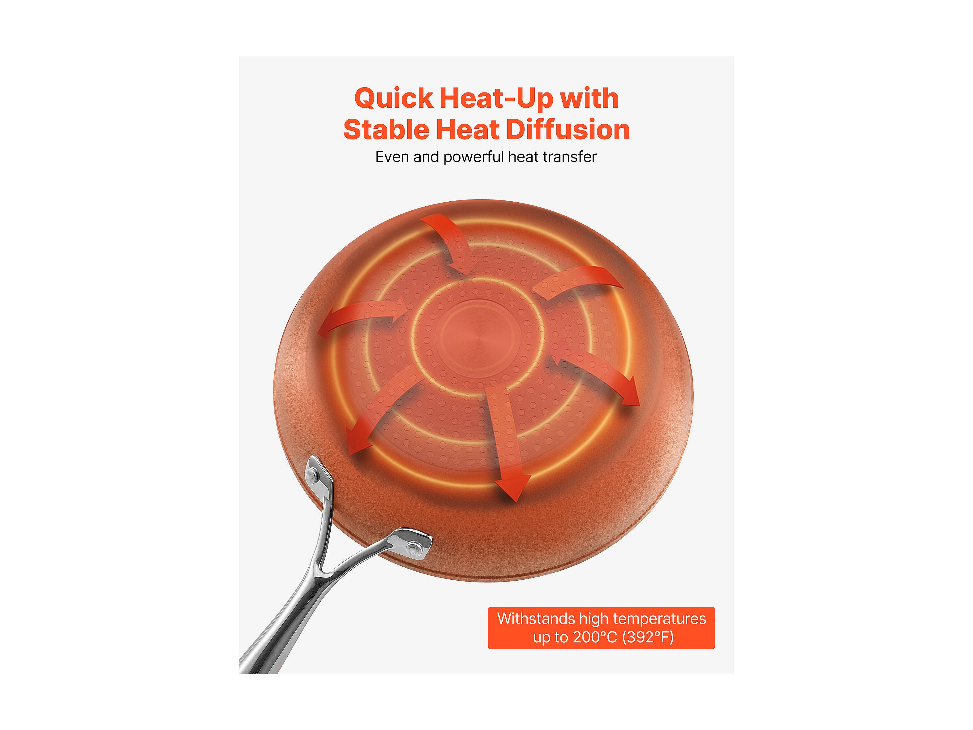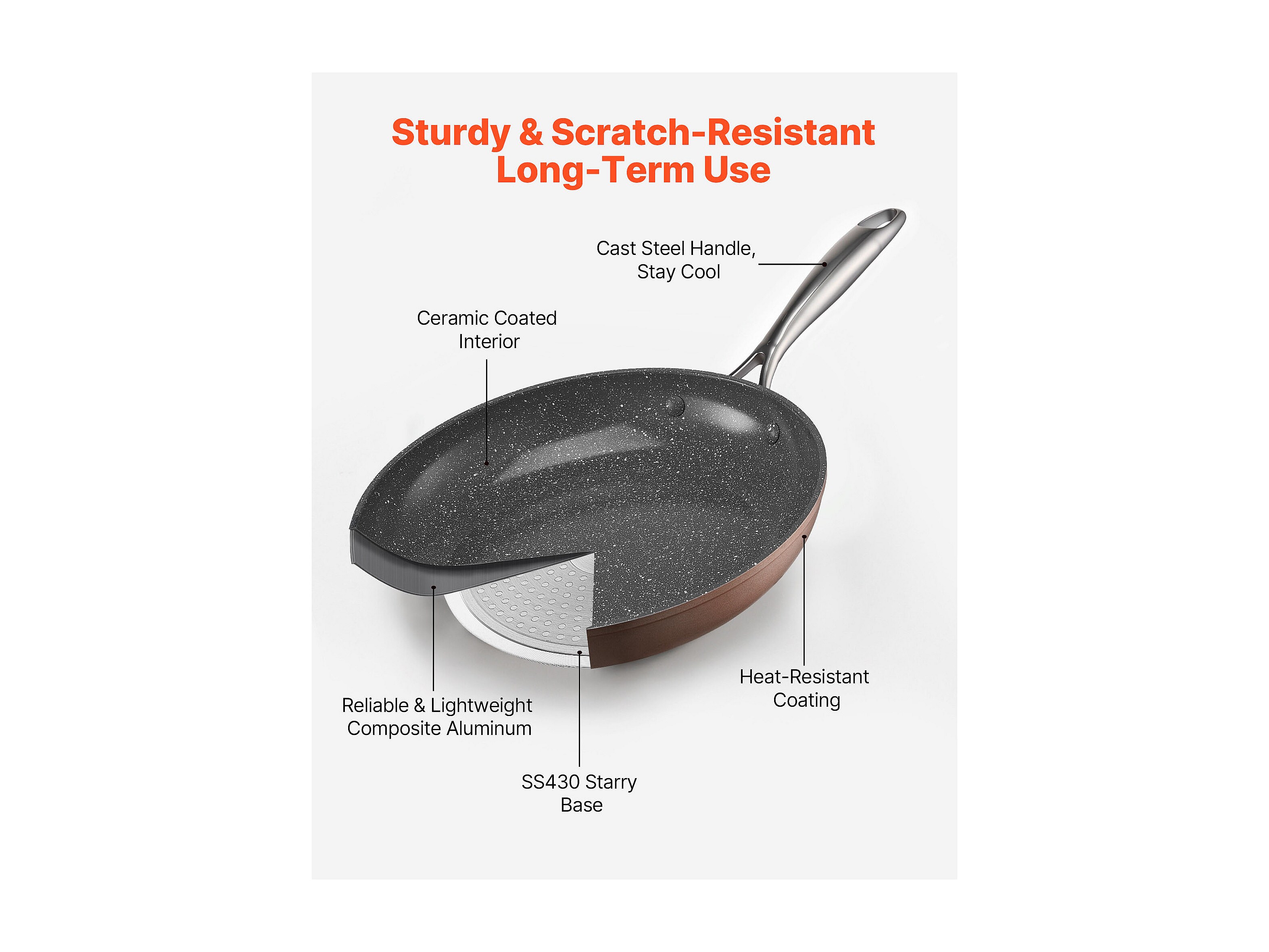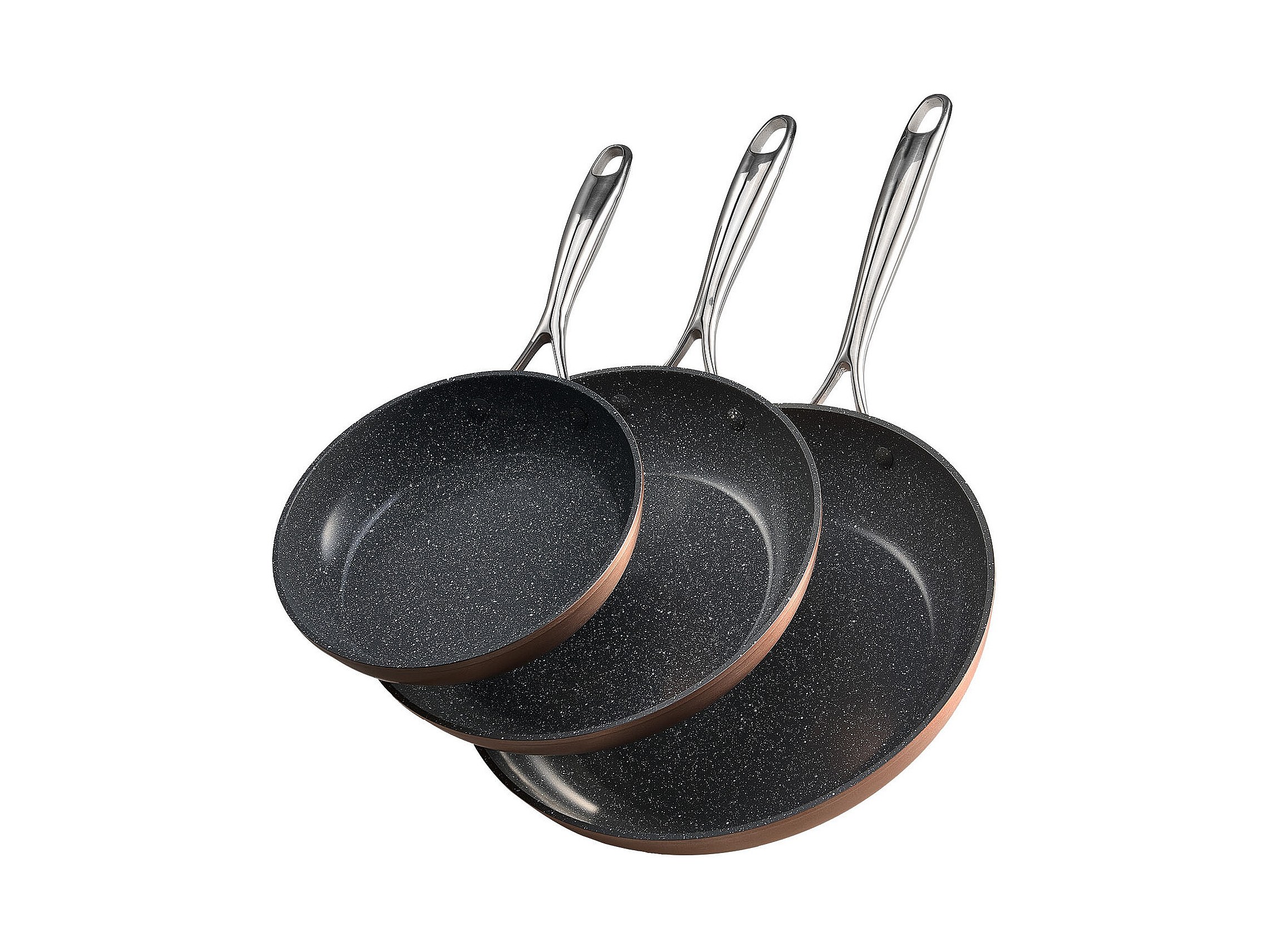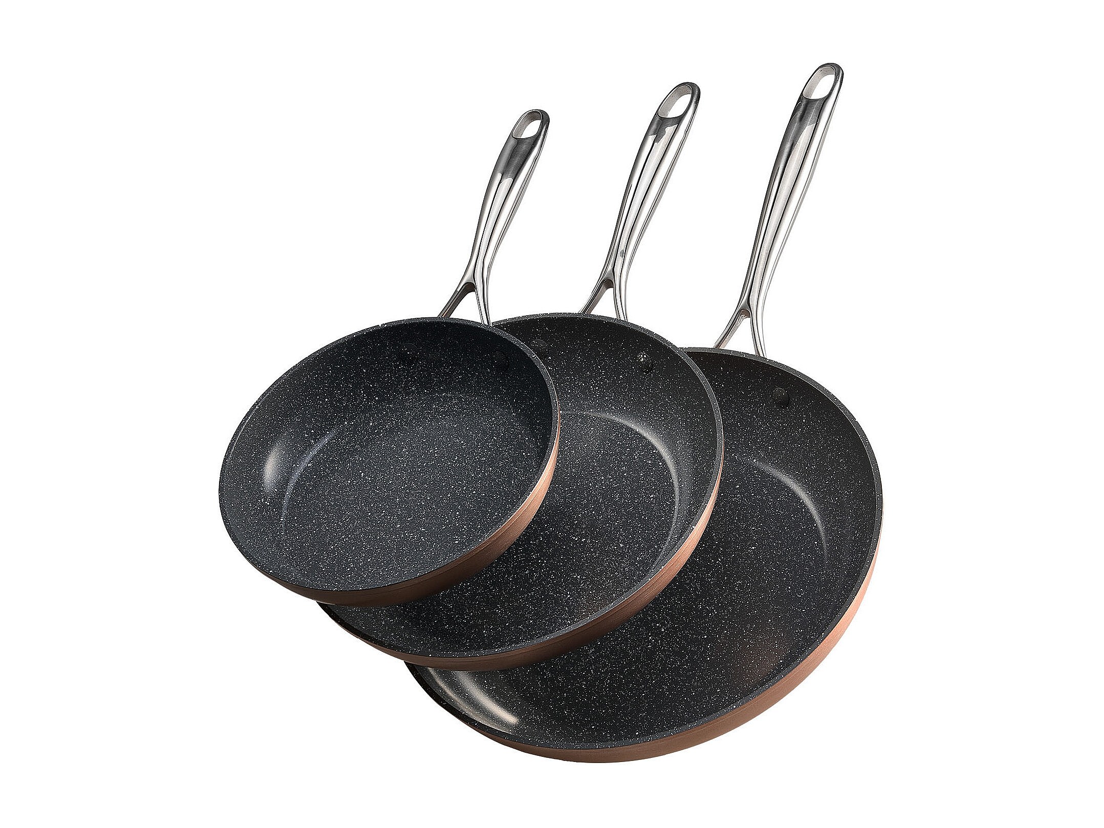 Padella in Alluminio SucceBuy, 3 Pezzi 20/27/30 Cm, Padella Antiaderente in Ceramica con Manico Resistente al Calore, per Gas, Elettrico