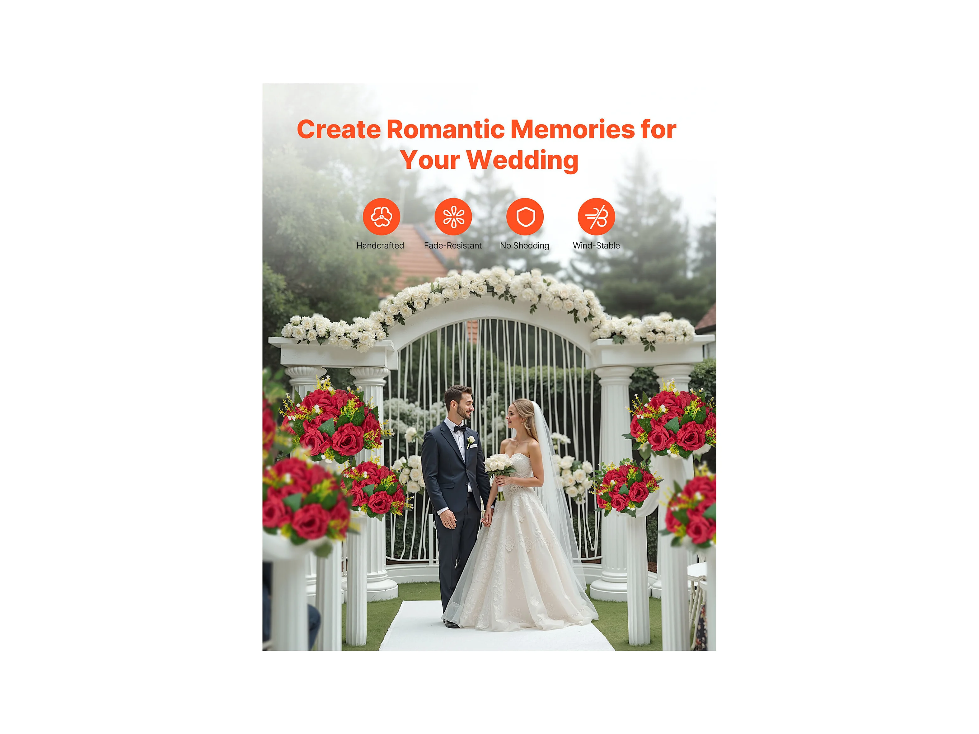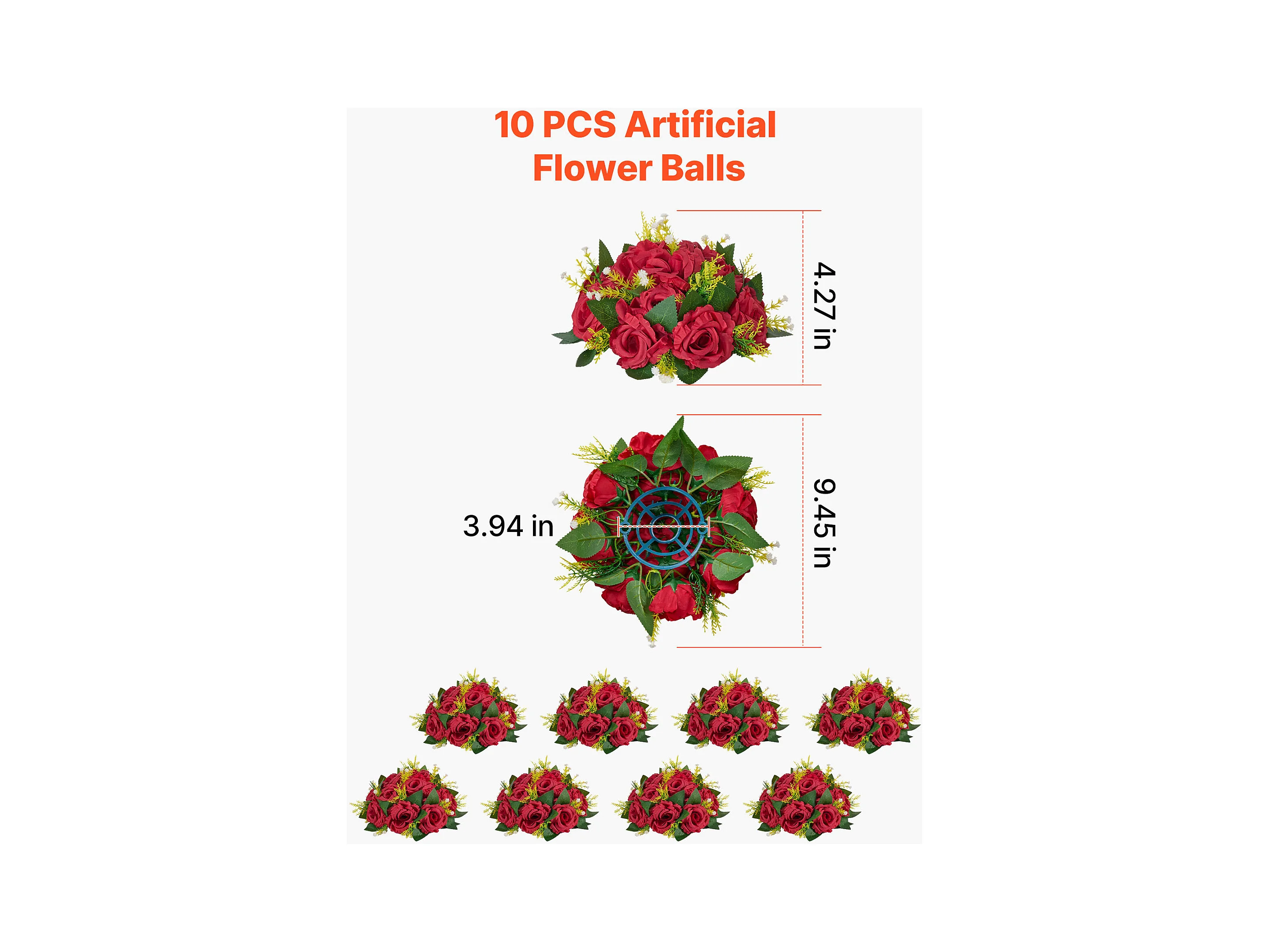 Palle di Fiori Artificiali SucceBuy, Lotto di 10, 24 cm, Composizioni di Rose Rosse Artificiali, Fiori Finti Decorativi per Centrotavola