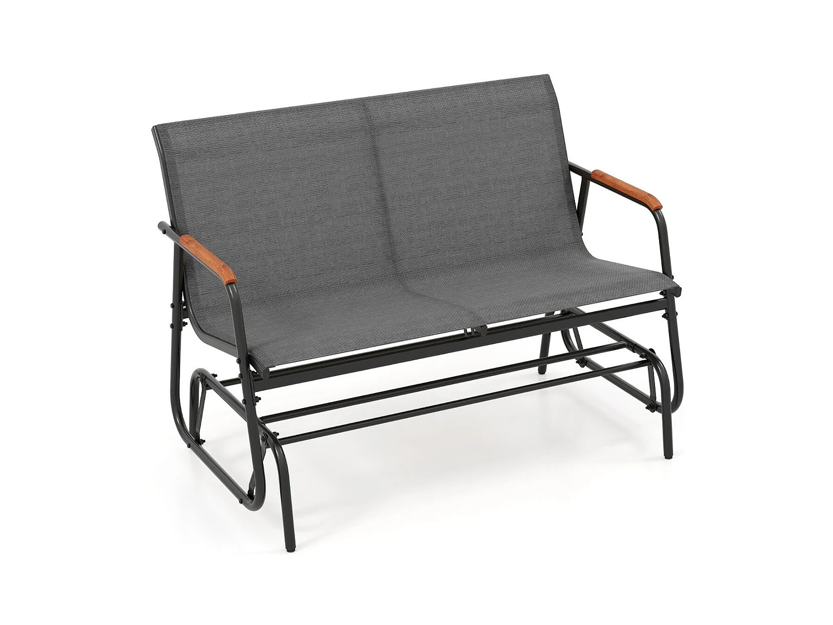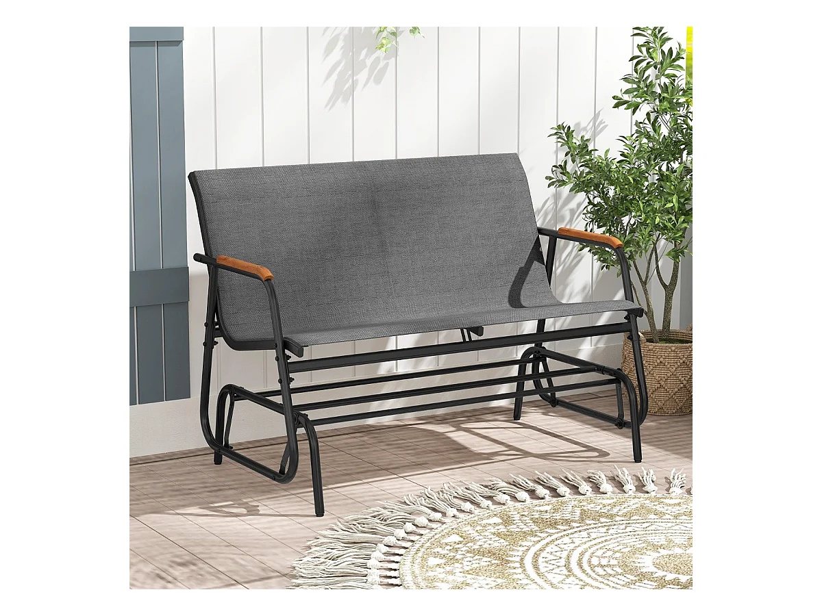 Panca a dondolo da esterno per 2 persone, Braccioli curvi in legno e seduta in tessuto traspirante Grigio