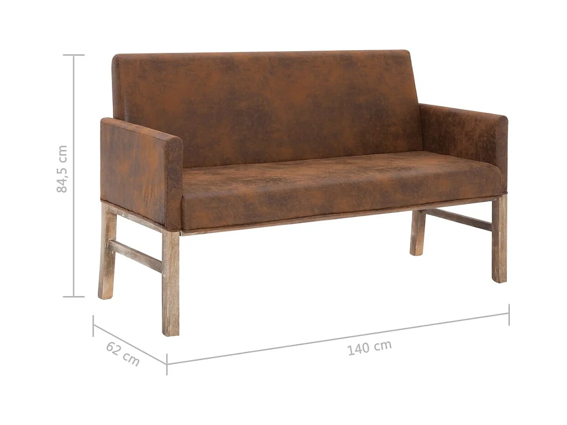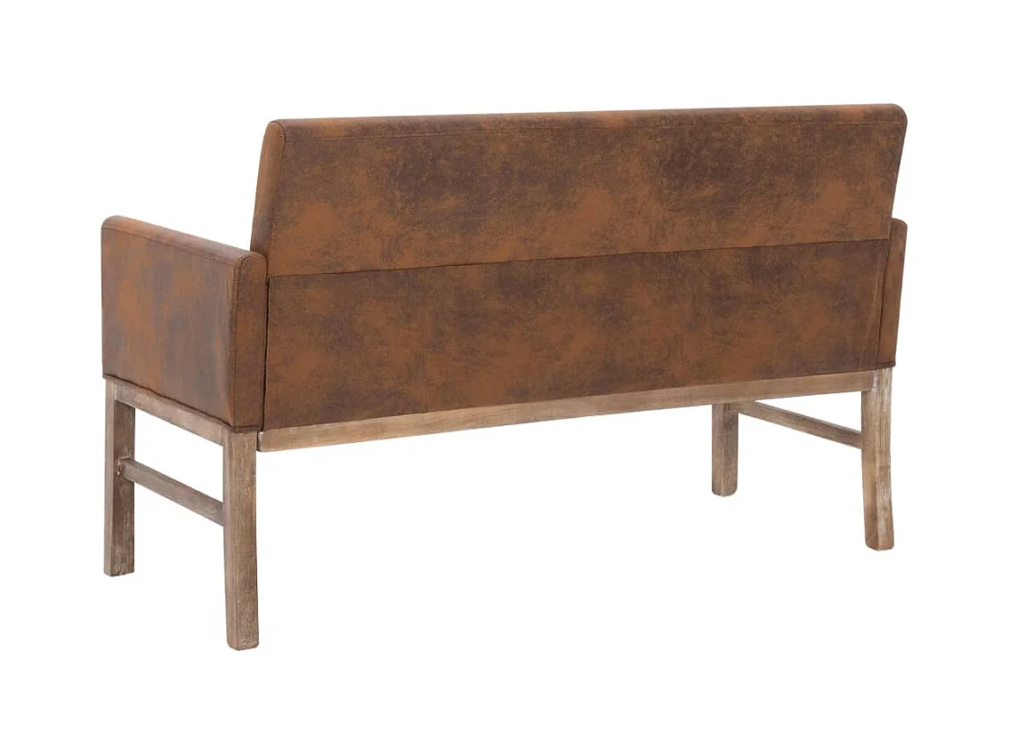 Panca con Braccioli 140 cm Marrone in Similpelle Scamosciata
