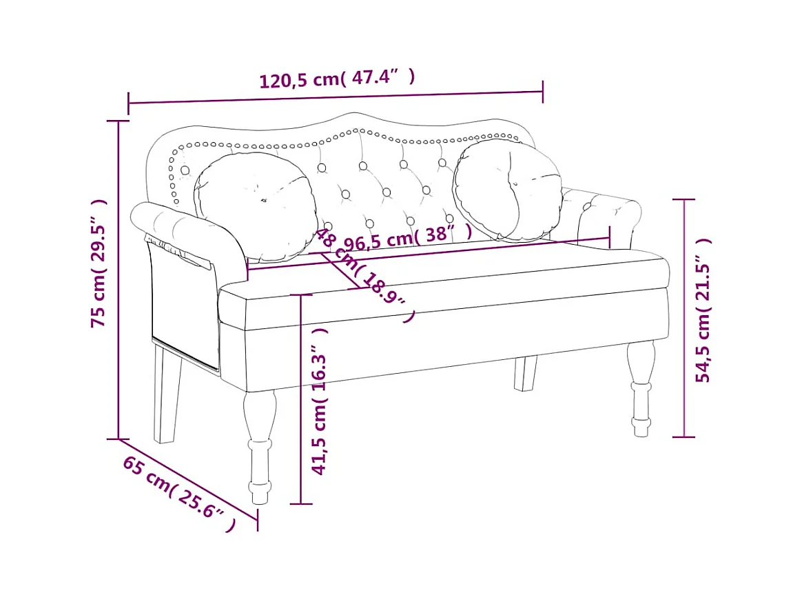 Panca con cuscini neri 120,5x65x75 cm velluto