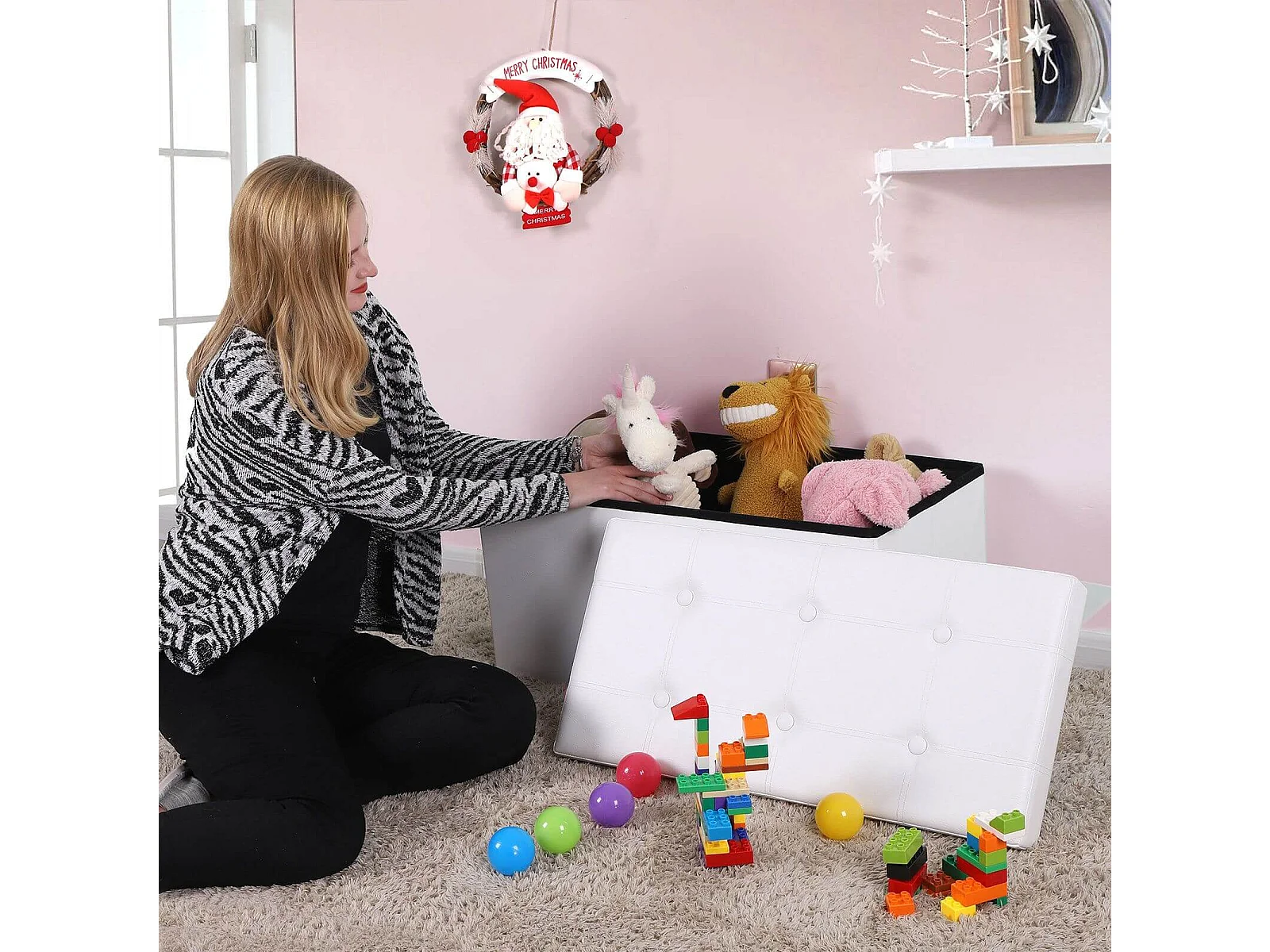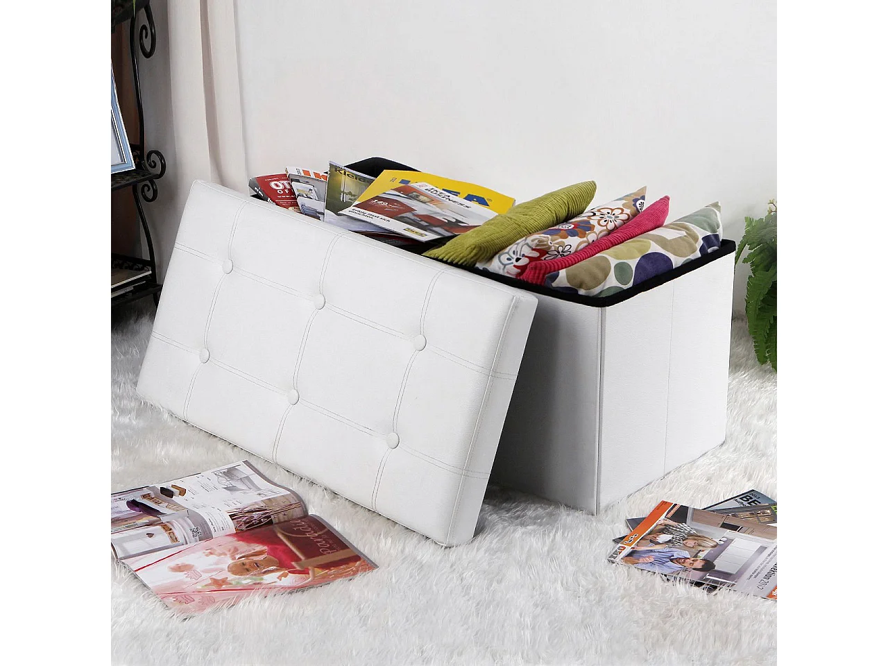 Panca bianca 70x30x30 cm in similpelle