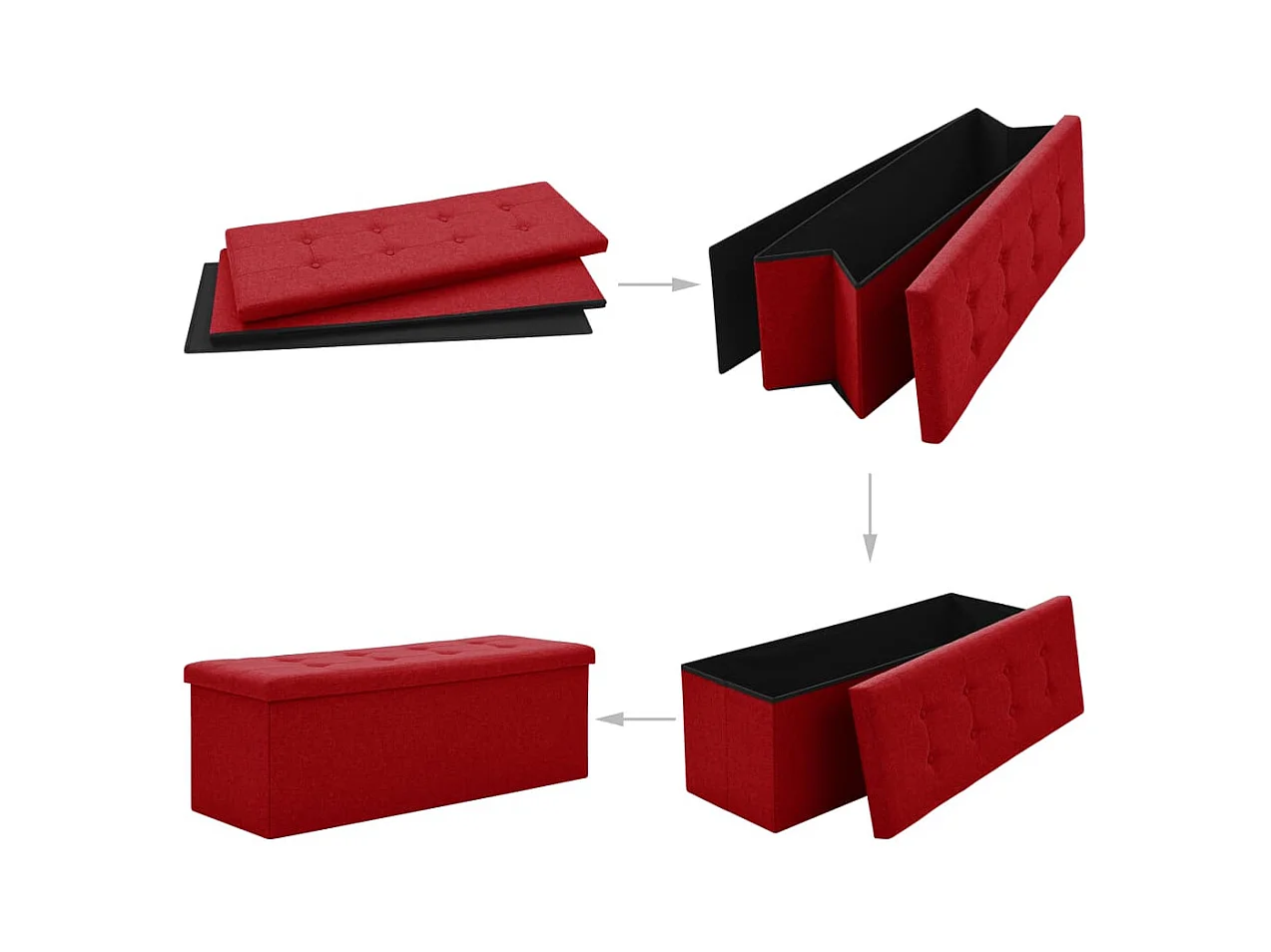 Panca contenitore pieghevole in finto lino rosso bordeaux