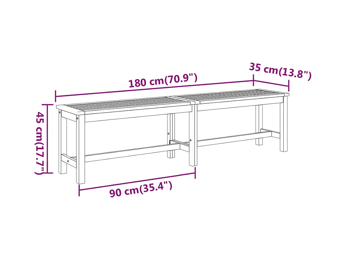 Panca da giardino 180x35x45 cm in legno massello di acacia
