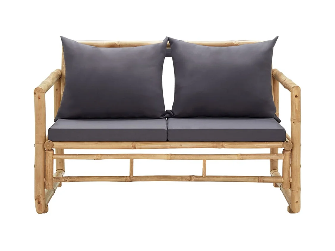Panca da giardino a 2 posti con cuscini intrecciati in resina grigia