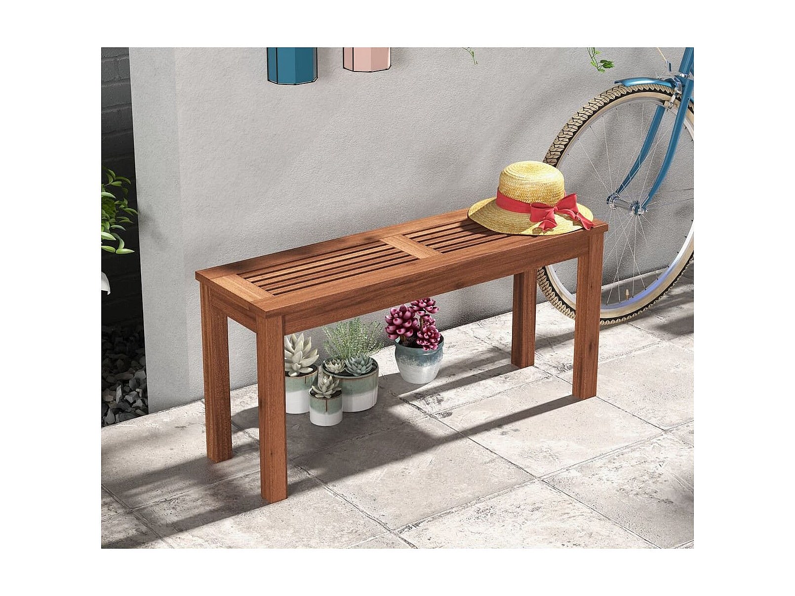 Panca da giardino in legno massello per 2 persone con seduta a doghe, Panca lunga 100cm per interni ed esterni