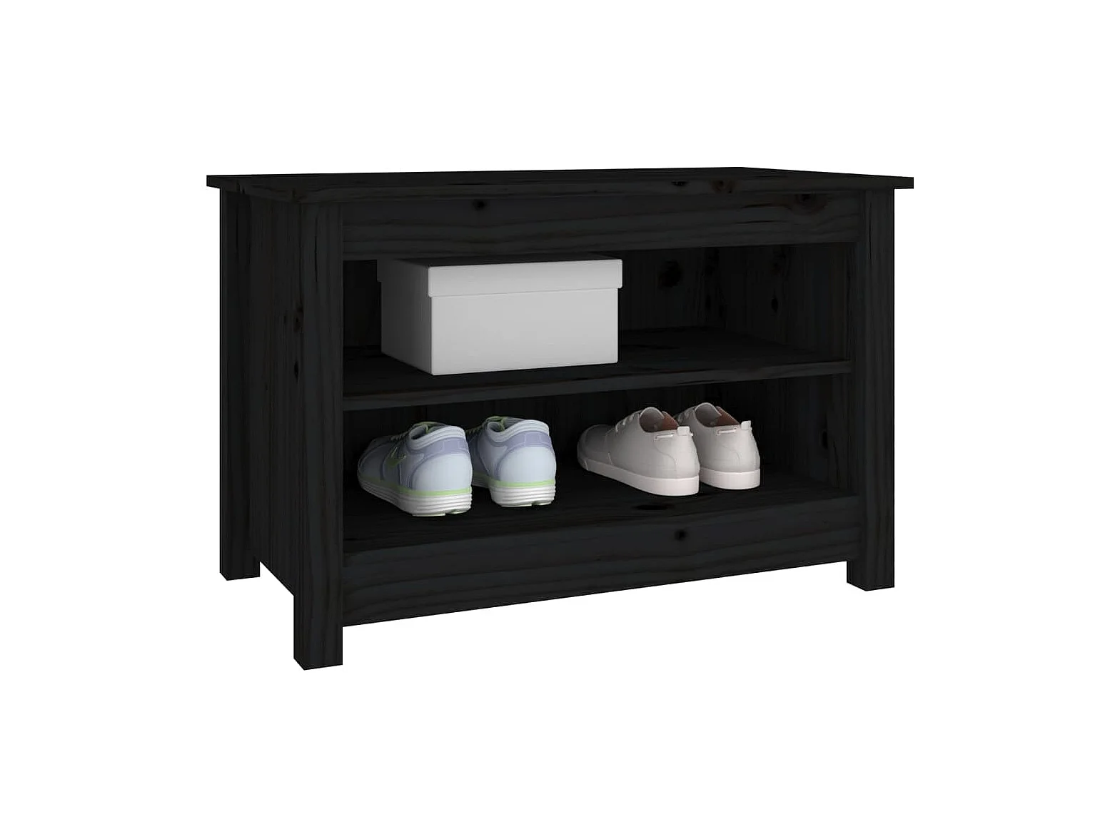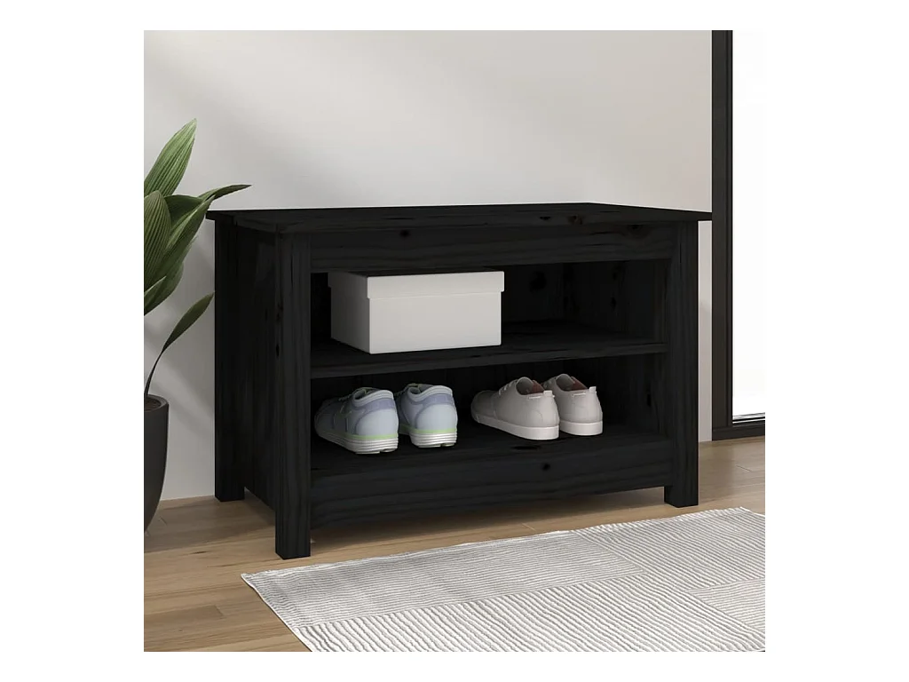 Panca portascarpe nera 70x38x45,5 cm Legno massello di pino