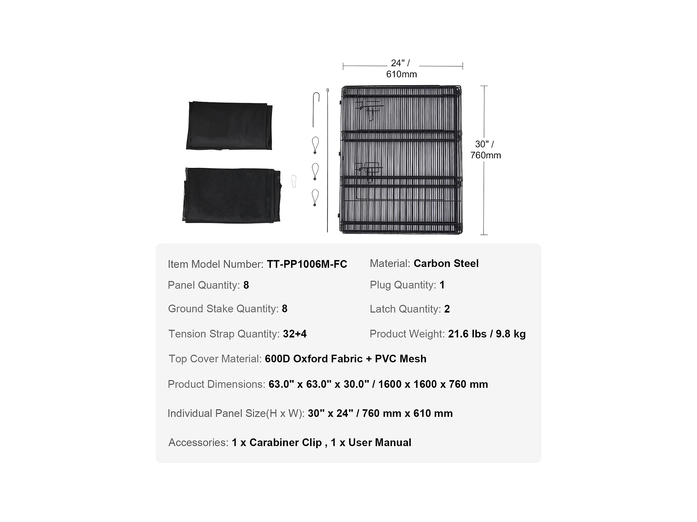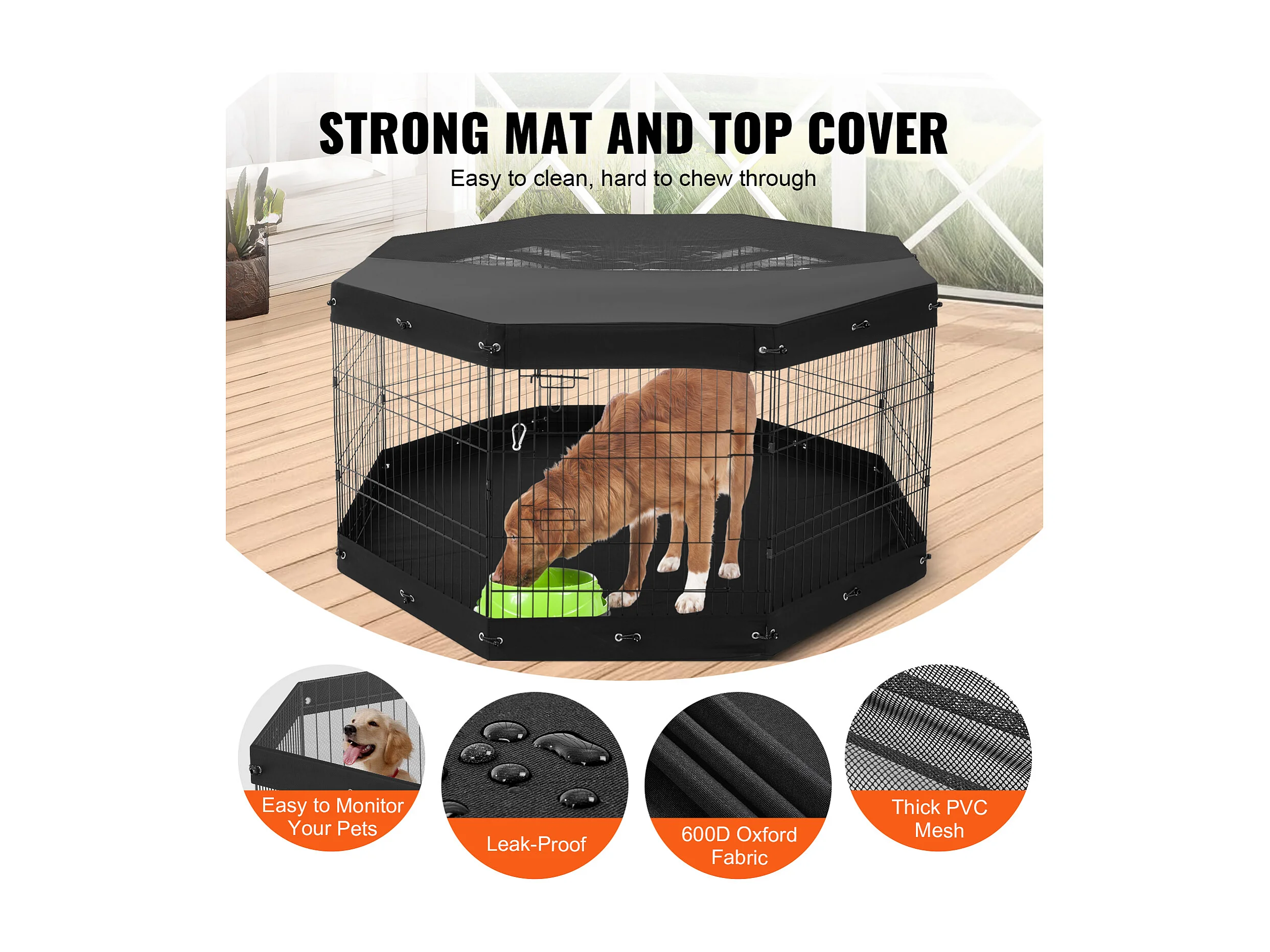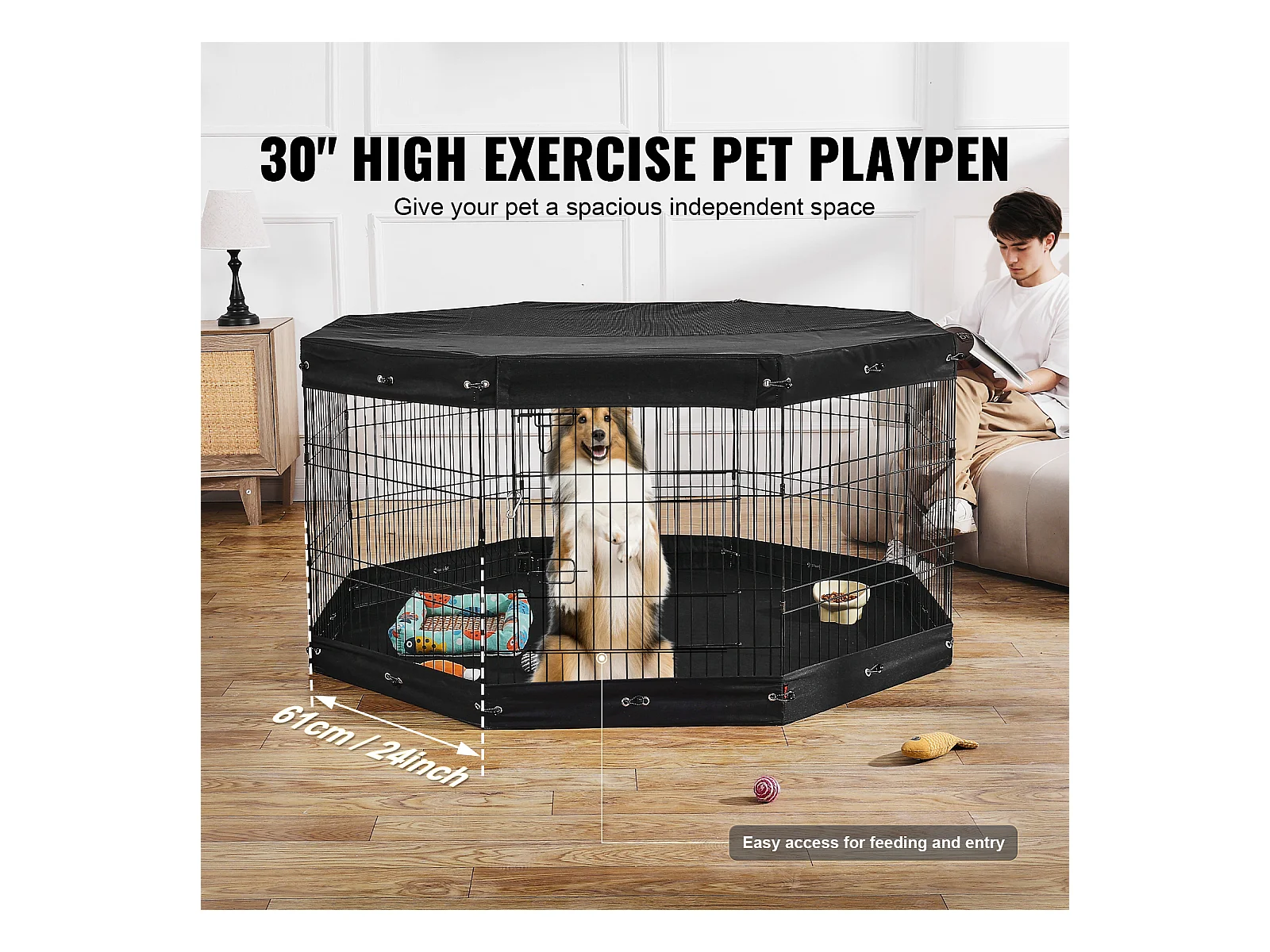 Parco per Cani SucceBuy Box per Cani a 8 Pannelli, Box per Esercizi in Metallo Pieghevole con Copertura Protettiva, Altezza 76.20 cm
