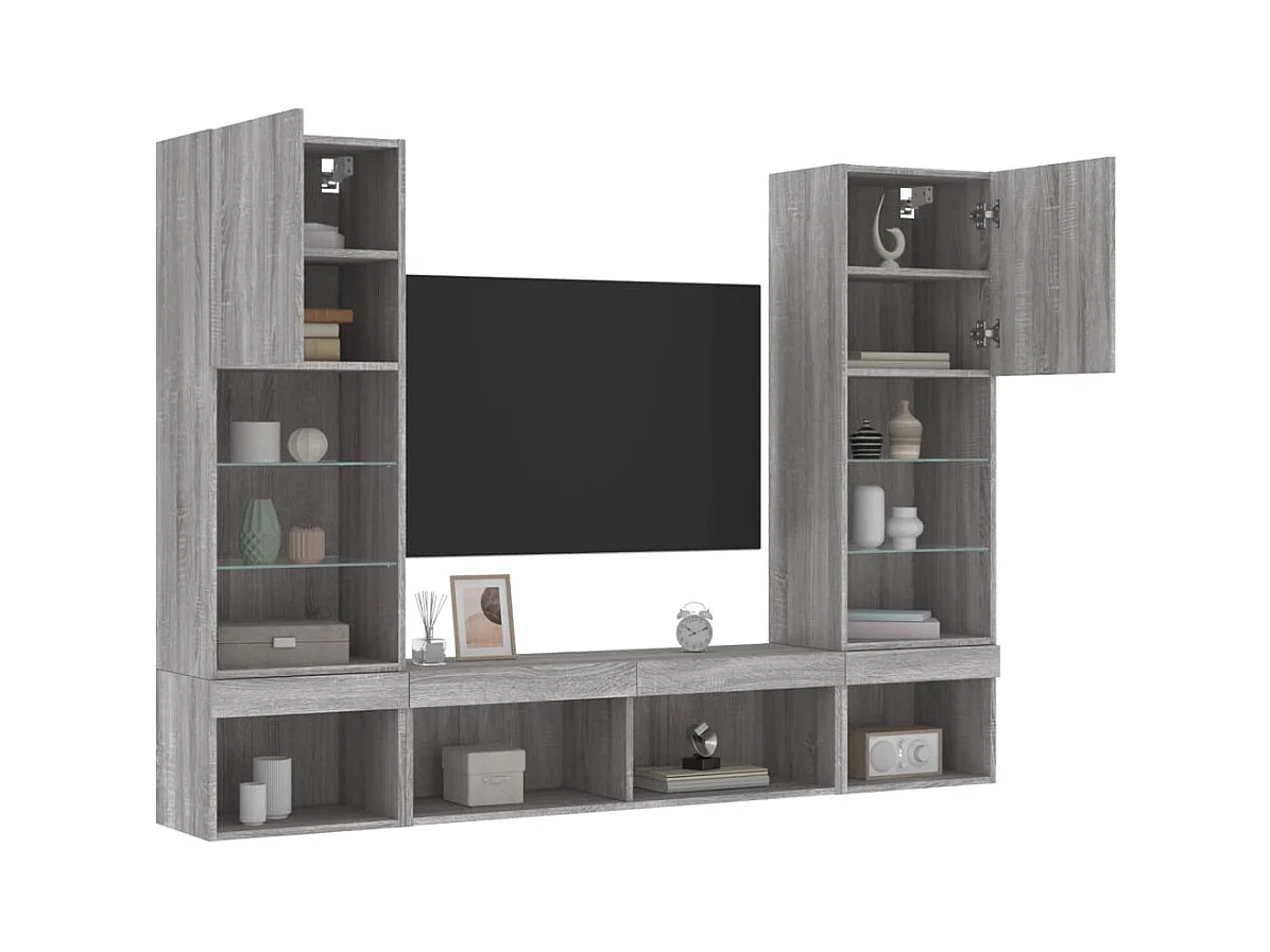 Parete attrezzata per TV LED da 5 pezzi in legno ingegnerizzato Sonoma Gray