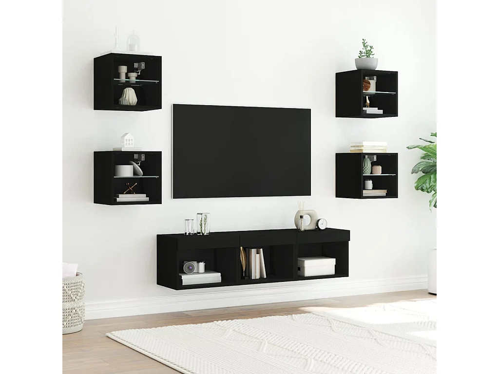 Set di mobili porta TV da 6 pezzi in legno ingegnerizzato nero