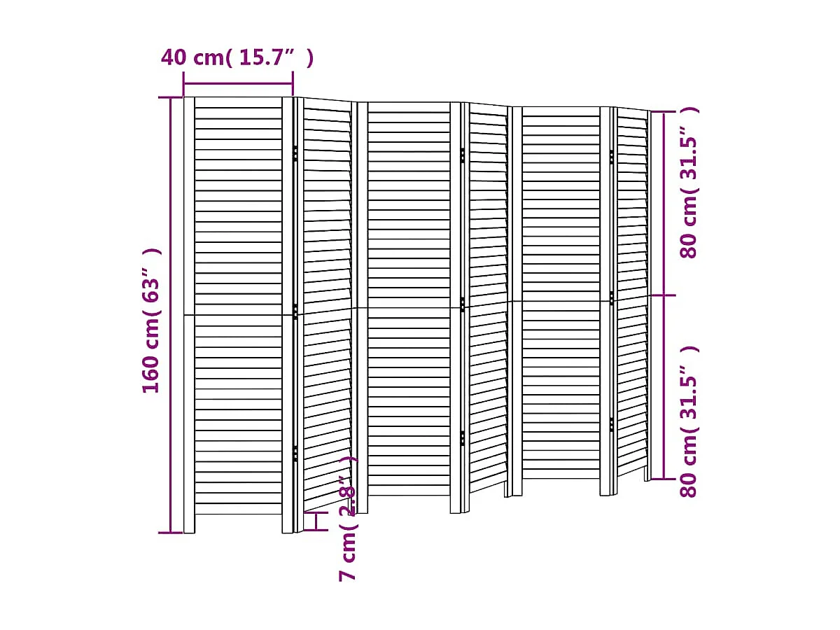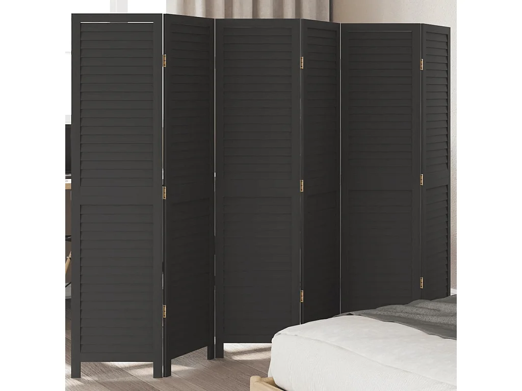 Parete divisoria a 6 pannelli in legno massello di paulonia nero