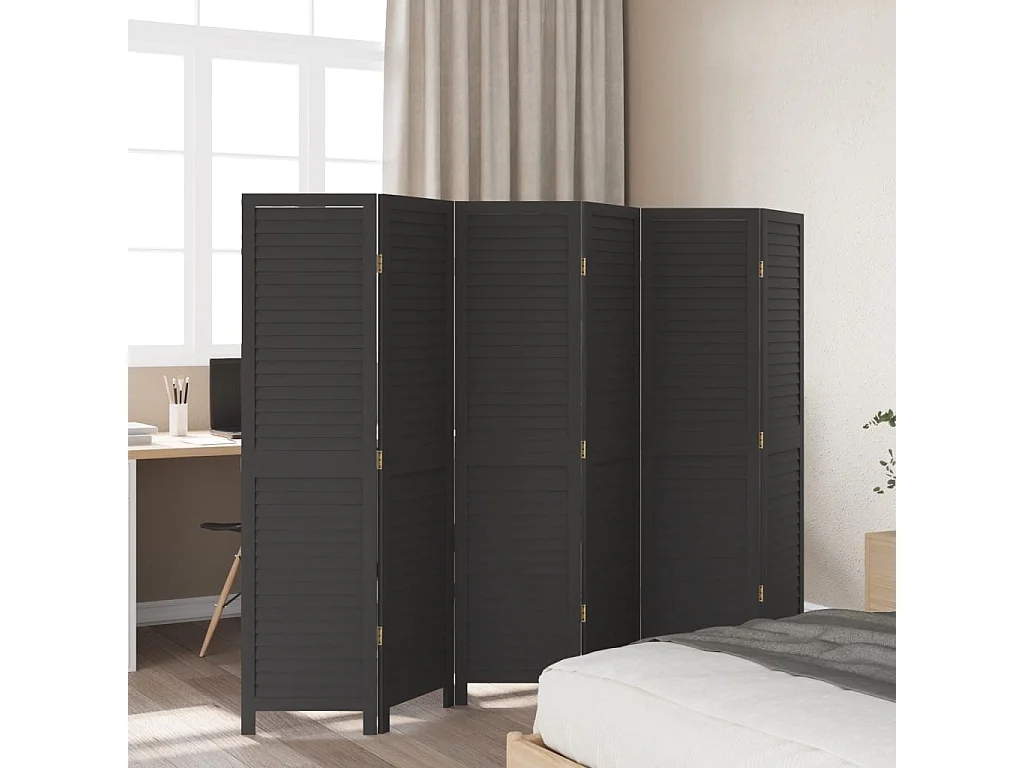 Parete divisoria a 5 pannelli in legno massello di paulonia nero